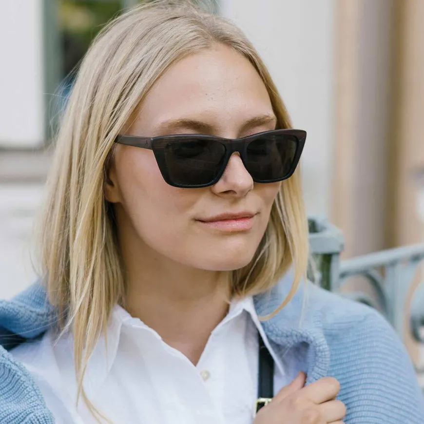Aarni -Merkin Fay Aurinkolasit Tummasta Eebenpuusta.Moderni Ja Hieman Matalampi Versio Klassisista “Cat Eye” Aurinkolaseista.Kehykset Ovat Valmistettu Ristiinliimatuista Eebenpuuviiluista, Jotka Yhdessä Hiilikuituytimen Kanssa Muodostavat Erinomaisen Kestävän Ja Kevyen Rakenteen. Eebenpuuta On Arvostettu Jo Vuosituhansien Ajan Ja Sitä Voidaan Löytää Niin Faraoiden Hauta-Arkuista Kuin Pianon Koskettimistakin. Aito Puu Tuo Laseihin Persoonallisuutta Ja Vivahteikkuutta.Aarni Aurinkolasit Toimitetaan Korkista Valmistetun Kotelon Kanssa, Jonka Saa Myös Kätevästi Litistettyä Taskuun Tai Laukkuun Mukaan.Kaikilla Aarnin Tuoteilla On 3 Vuoden Takuu Ja Aurinkolasit Toimitetaan Kauniin Korkkisen Kotelon Kanssa.