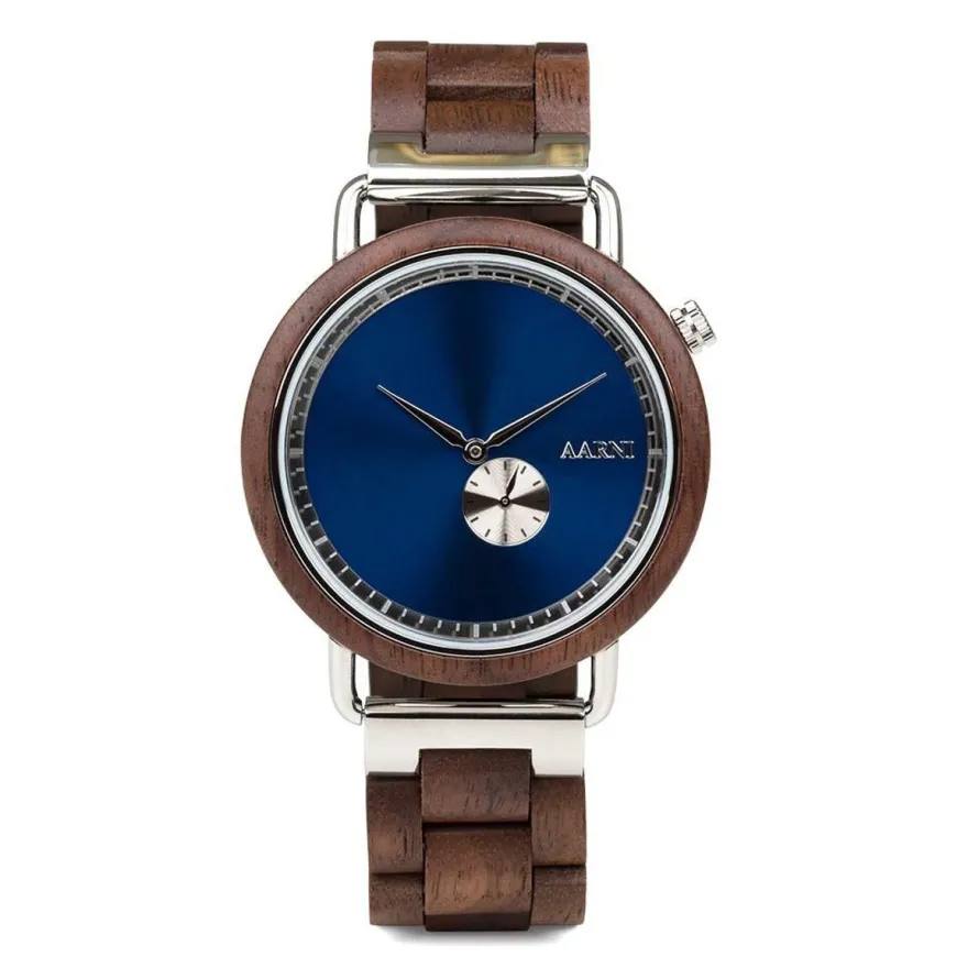 Aarni-Merkin Sirius Rannekello Pähkinäpuusta Valmistettuna.Mieleenpainuvaa Tyyliä. Siriuksen Upea Ja Selkeä Muotoilu Asettaa Riman Korkealle. Hopeiset Yksityiskohdat Sekä Pieni Sekuntinäyttö Vangitsevat Katseen. Tämä Tyylikäs Kello Sopii Erinomaisesti Jokaiseen Päivään – Niin Toimistolle Kuin Edustustilanteisiin.Kello Toimitetaan Tyylikkäässä Lahjakotelossa.Kaikilla Aarnin Tuotteilla On Kolmen Vuoden Takuu.