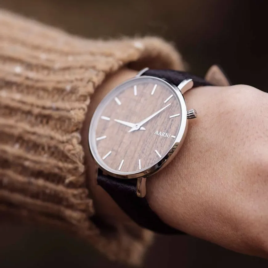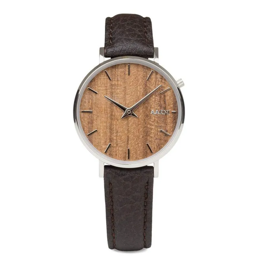 Aarni -Merkin Taiga Rannekello Tiikistä Valmistettunaklassinen Design Yhdistettynä Hirvennahan Pehmeyteen. Taiga Kello On Suunniteltu Erityisen Ohkaiseksi Tehden Siitä Äärimmäisen Kevyen Käytettäväksi. Hopeiset Yksityiskohdat Ja Tiikistä Valmistettu Kellotaulu Luovat Harmoonisen Kokonaisuuden. Taiga Sopii Erinomaisesti Jokaiseen Päivään.Kellon Ranneke On Valmistettu Ainutlaatuisesta Hirvennahasta. Äärimmäisen Pehmeä Nahka Tuntuu Pehmeältä Iholla Ja On Hyvin Kestävää. Nahka On Metsästyksen Sivutuote, Joten Yhtäkään Hirveä Ei Metsästetä Tämän Takia.Kello Toimitetaan Tyylikkäässä Lahjakotelossa.Kaikilla Aarnin Tuotteilla On Kolmen Vuoden Takuu.