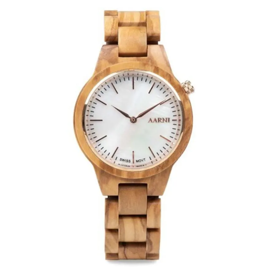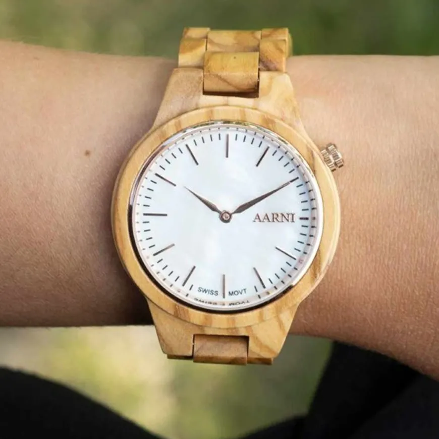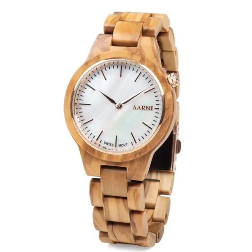 Aarni -Merkin Vega Rannekello Oliivipuusta Valmistettuna.Arvokkaasti Hempeä. Vega Tuo Yhteen Ilmeikkään Oliivipuun Ja Kauniin Valkoisen Kellotaulun, Joka Heijastelee Valoa Simpukankuoren Tavoin. Puinen Kuori Kätkee Sisäänsä Tarkasti Työstetyn Ruostumattomasta Teräksestä Valmistetun Kotelon. Kierrettävä Takakansi Sinetöi Rakenteen Ja Pitää Koneiston Turvassa Pölyltä Sekä Vedeltä. Safiiripinnoitettu Mineraalikristallilasi Kiinnittyy Suoraan Teräksiseen Runkoon. Safiiripinnoite Tekee Lasista Käytännössä Naarmuuntumattoman. Mineraalikristallilasi Takaa Hyvän Iskunkestävyyden.Kello Toimitetaan Tyylikkäässä Lahjakotelossa.Kaikilla Aarnin Tuotteilla On Kolmen Vuoden Takuu.