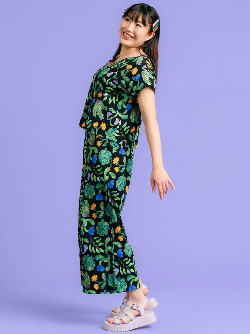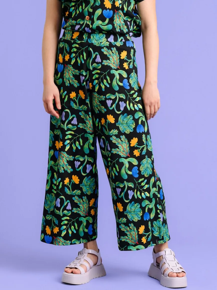 Aarre X Mia Minerva Malliston Alex Culottesit Kasvaa Kuosilla.Uniikin Mia Minerva X Aarre Kuvittajayhteistyömalliston Alex Culottes -Housut Kruunaavat Rennon Tyylikkään Asusi! Luo Asiallisempi Look Yhdistämällä Alex -Housut Kauluspaitaan Ja Huulipunaan, Tai Muunna Housut Vapaa-Aikaan Yhdistämällä Ne Lempitennareihisi Ja Rentoon T-Paitaan 3Mia Minervan Suunnittelema Kasvaa -Kuosi On Värikäs, Lempeä Ja Juhlistaa Kasvua Leikkisällä Asenteella. Housujen Materiaali On Ryhdikästä, Hieman Trikoota Vahvempaa Luomupuuvillaista Interlockia. Housujen Korkea Vyötärö Istuu Hyvin, Mutta Lahkeet Ovat Ilmavat Ja Levenevät Reilusti. Vyötäröllä Leveä Kuminauha.