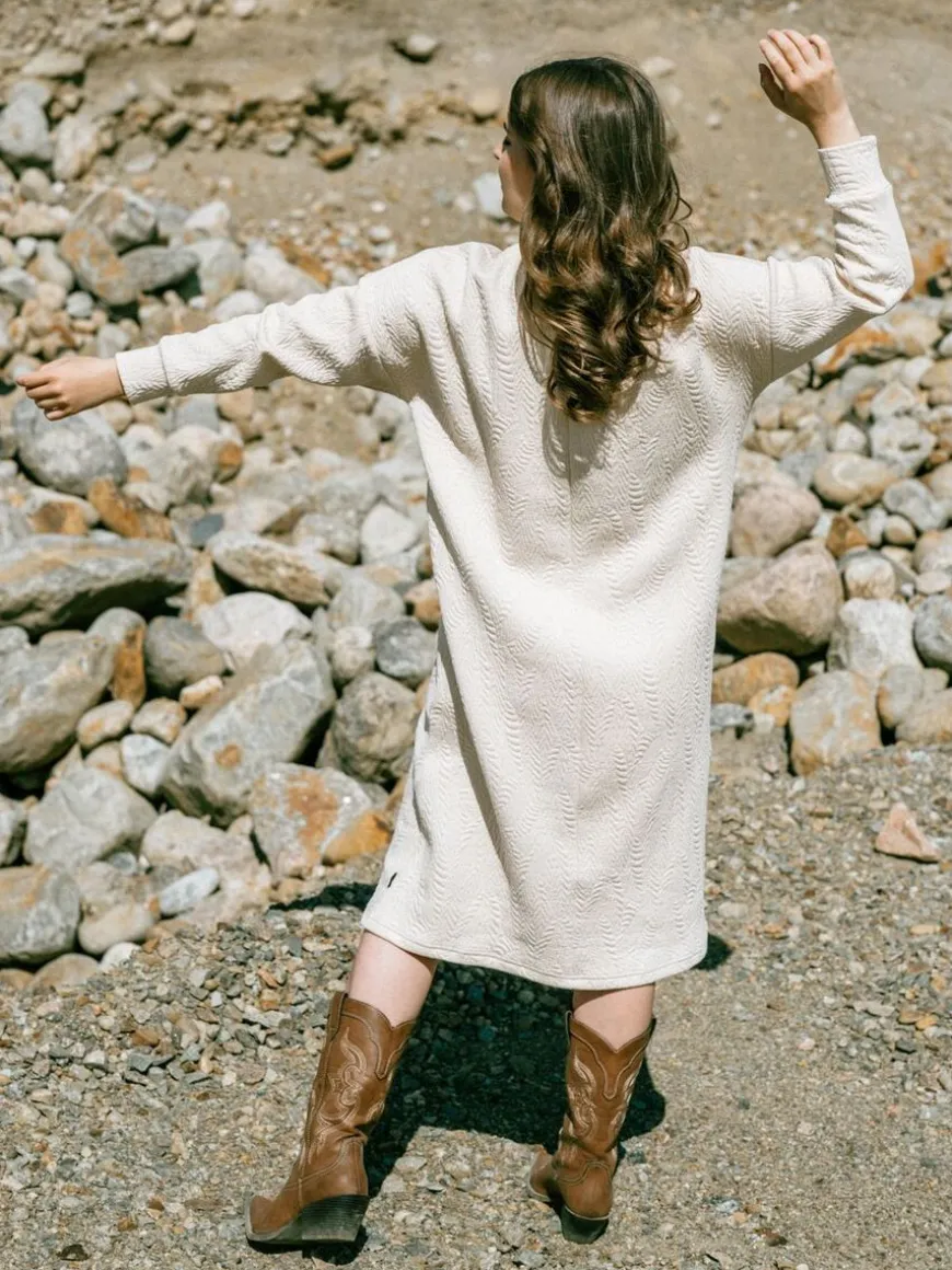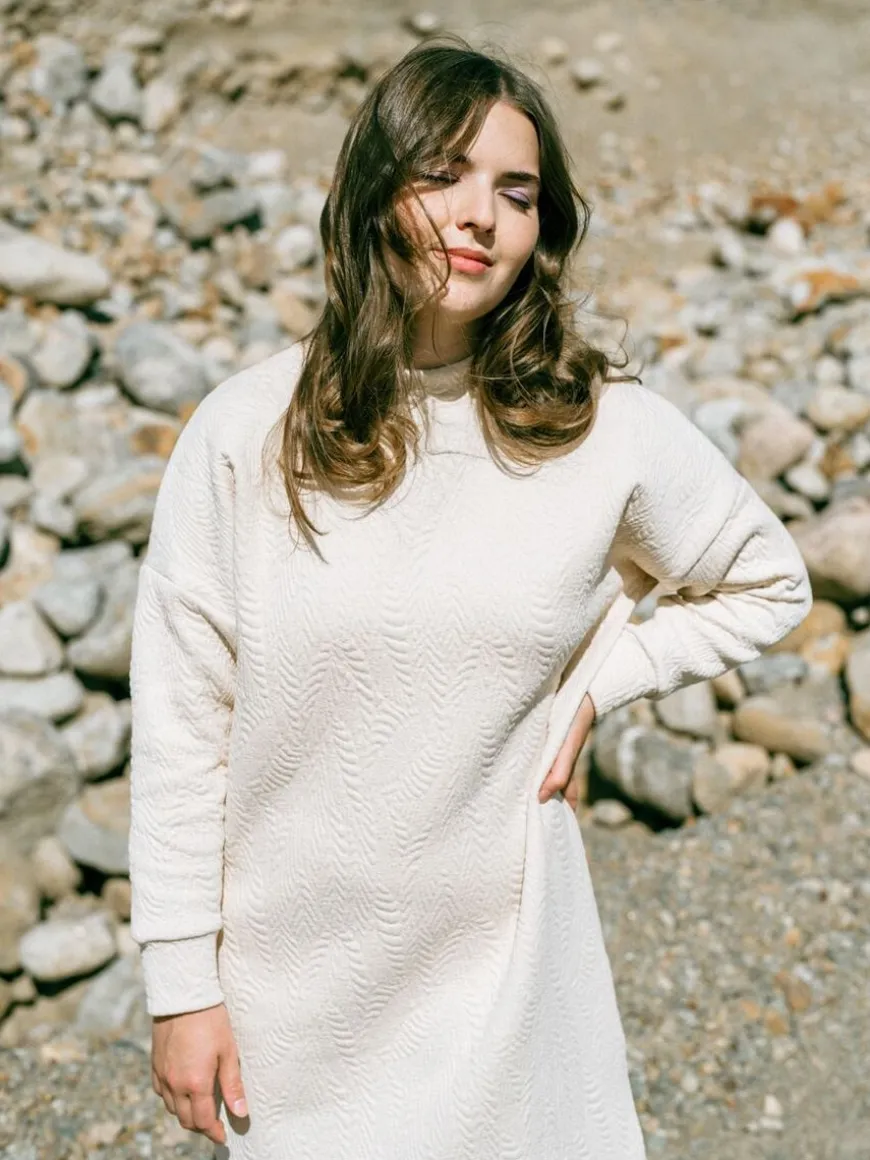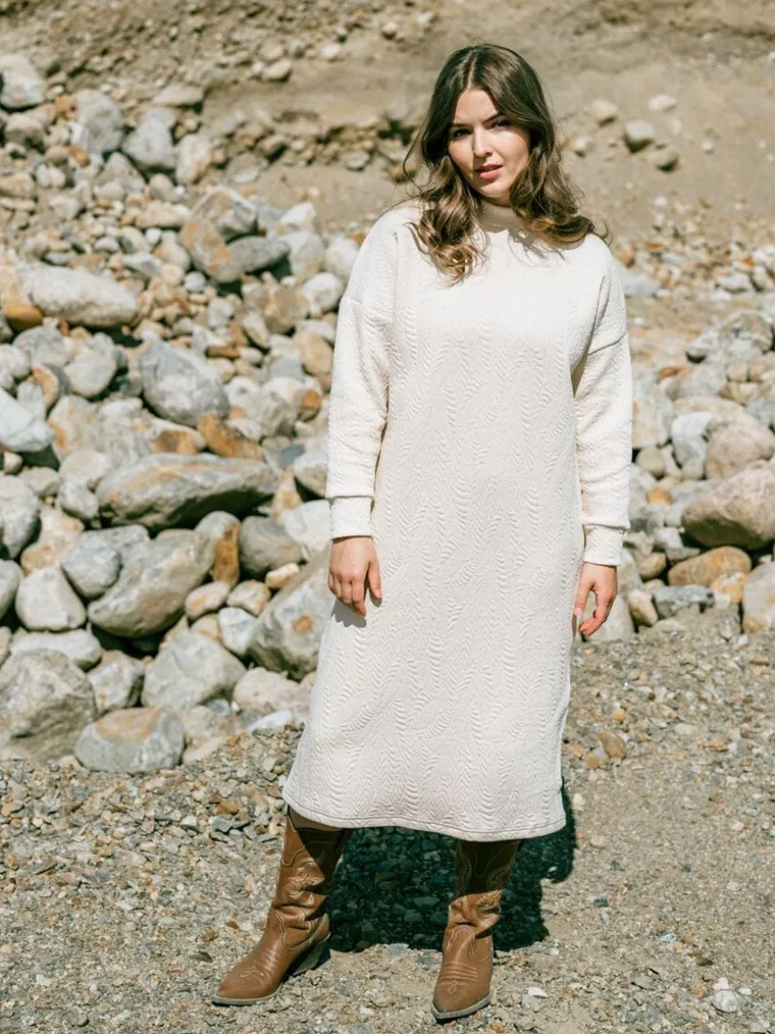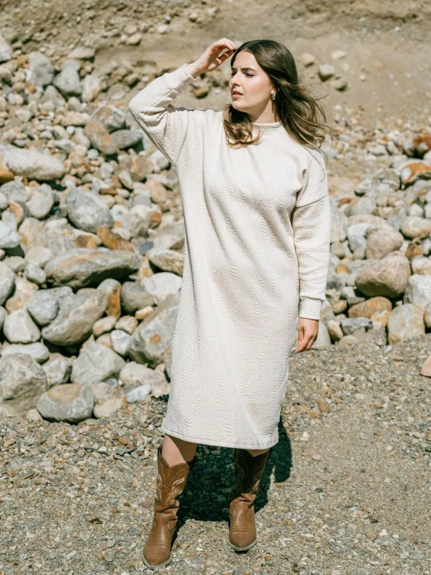 Aarre -Merkin Bonnie Mekko Vaalean Beigellä Wild Jacquard Kuvioinnilla.Kaunis, Vaalea Bonnie -Mekko On Valmistettu Trikoota Paksummasta Jakardineuloksesta. Wild -Kohokuviointi Tekee Yksivärisen Neuloksen Pinnasta Eläväisen Ja Hieman Neulemaisen. Monikäyttöinen, Lämmin Ja Mukava Mekko On Helppo Valinta Toimistolle Ja Arkeen. Juhlavamman Asun Voit Luoda Lempikoroilla, Huulipunalla Ja Kauniilla Korvakoruilla! Talvikaudella Pue Mekon Kaveriksi Mukavat Leggingsit Tai Sukkahousut Ja Neuletakki. Jakardineulos On Joustava, Pehmeä Ja Mukavan Tuntuinen Materiaali Käytössä. Pyöreä Pääntie, Täyspitkät Hihat. Takana Vetoketju. Mekon Helma On Pohjemittainen.