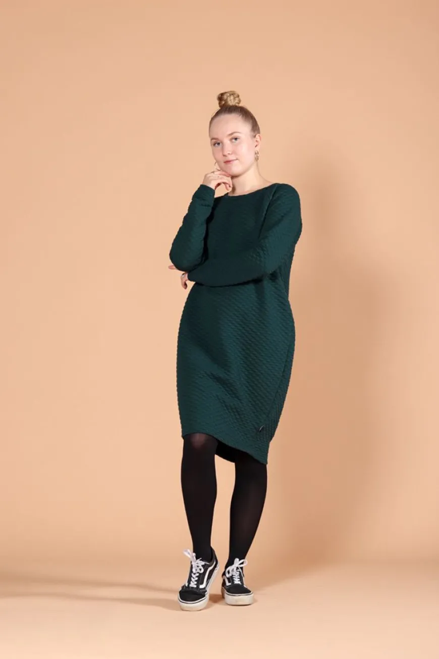 Aarre -Merkin Bubble Tunika Upeassa Tummanvihreässä Sävyssä.Mukavan Pitkä Ja Väljä Tunika On Arjen Luottovaate 3 Bubble Sopii Puettavaksi Niin Housujen Kuin Leggingsien Ja Sukkisten Kanssa Kelistä Ja Tilanteesta Riippuen – Leggingsien Kanssa Toimistolle Ja Sukkisten & Korkojen Kanssa Illan Juhliin. Tämän Ansiosta Voitkin Käyttää Vaatetta Ympäri Vuoden!Tunikan Jujuna On Selkäkappaleen Iso Laskos, Sekä Hauska Kuplamuovimainen ”Bubble” Kohoneulos. Helma On Hieman Alaspäin Kapeneva Sekä Kaarrettu. Täyspitkät Raglanhihat.