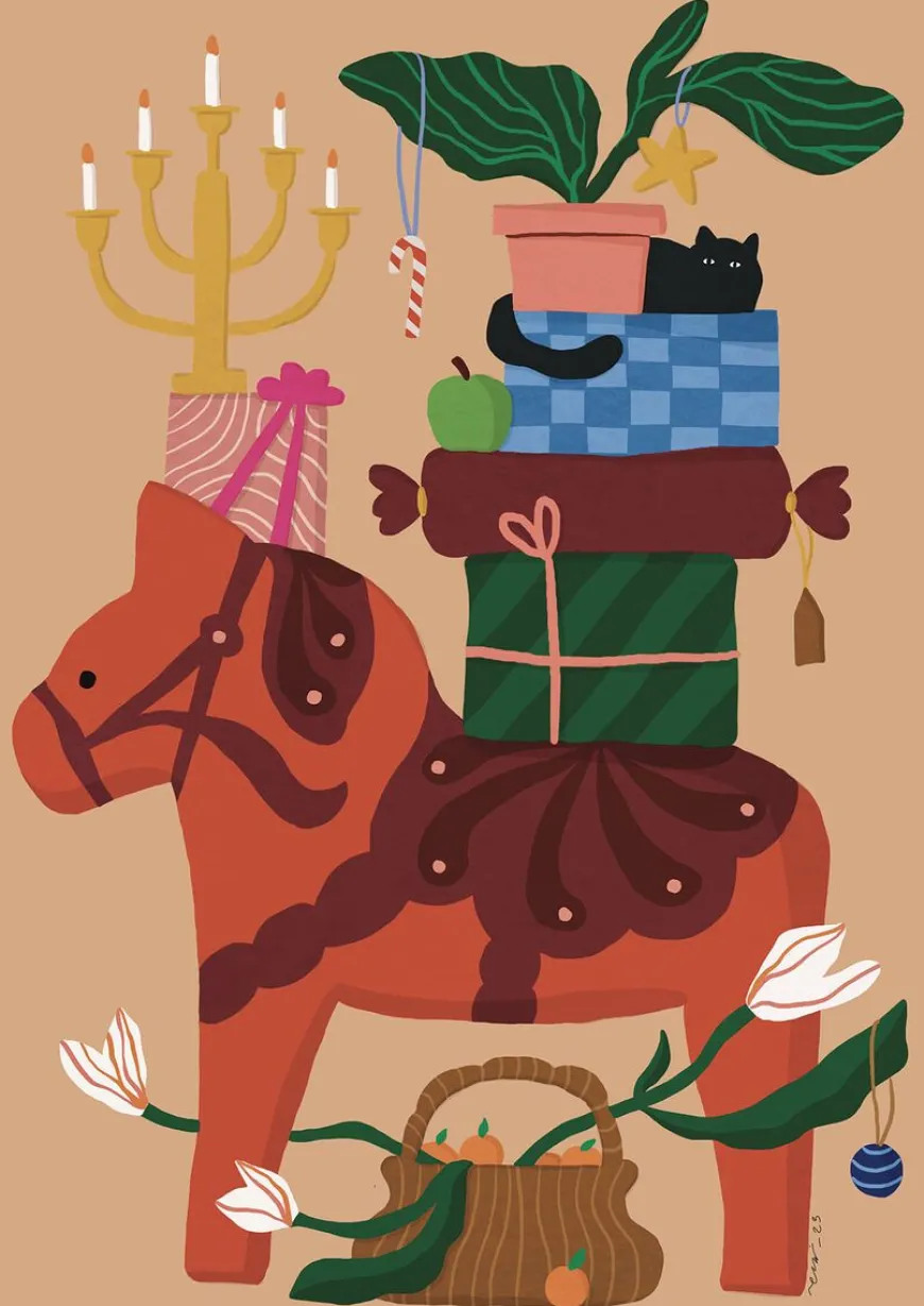 Terhi Isokuortti Aattosaatto Joulukortti.Postikortin Koko A6.Terhi Isokuortti On Visuaalinen Ja Verbaalinen Suunnittelija, Intohimoinen Sanojen Ja Kuvien Käyttäjä.