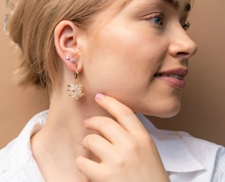 Laura Eveliina Design -Merkin Aurora Borealis Korvakorut.Suosittu Sävy ’Aurora Borealis’ Loistaa Kirkkaasti Ja Välkehtii Hempeissä Sateenkaaren Sävyissä. Korussa On Käytetty Kirkkaita Aurora Borealis Lasikristalleja & Tsekkiläisiä Kristalleja. Korvarenkaat & Metallihelmet Ovat Kultaisen Sävyisiä. Kultaiset Korunosat Ruostumatonta Terästä 24Karaatin Kultauksella. Laura Eveliina Design Korvakoruja On Kahdessa Koossa, Tämä Korumalli On Isompaa Kokoa.Pituus: Noin 3,5 Cmvalmistettu Suomessa.