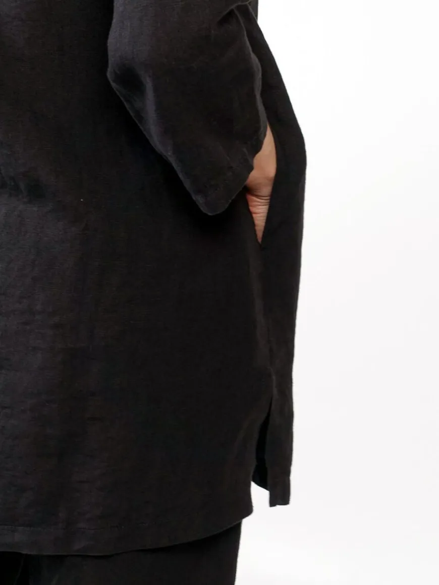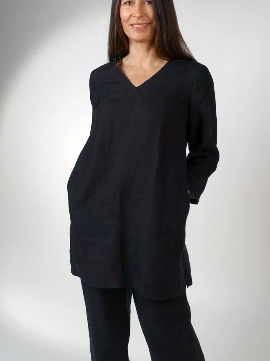 Cuosi -Merkin Amanda Pellavatunika Mustana.Amanda On Rento Väljälinjainen Pellavatunika. Vaatetta Käytät Niin Housujen Kuin Legginsien Kanssa Arjessa Ja Vapaa-Ajalla. Pellavatunika On Omiaan Kesään, Mutta Menee Kerrostettuna Käytössä Ympäri Vuoden!Mallissa ¾ -Pituiset Hihat Sekä V-Pääntie. Keskiedussa On Pystysauma, Sivusaumoissa Taskut Ja Helmassa Sivuissa Halkiot. Cuosin Käyttämä Pellava On Erittäin Laadukasta Ja Miellyttävän Tuntuista Ihoa Vasten.