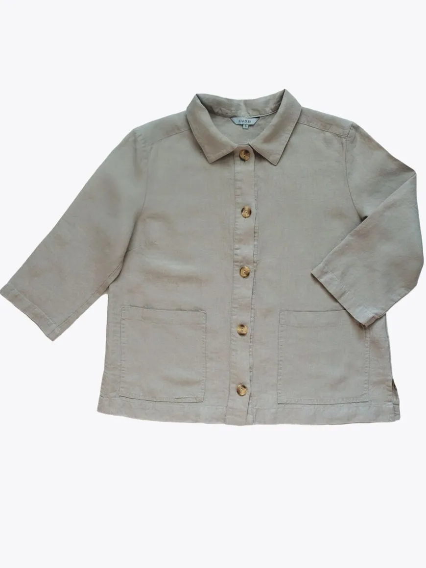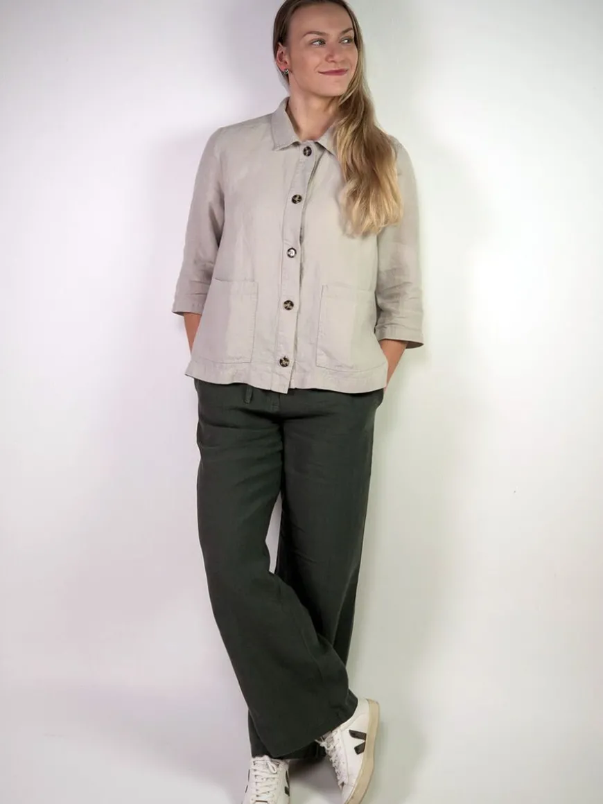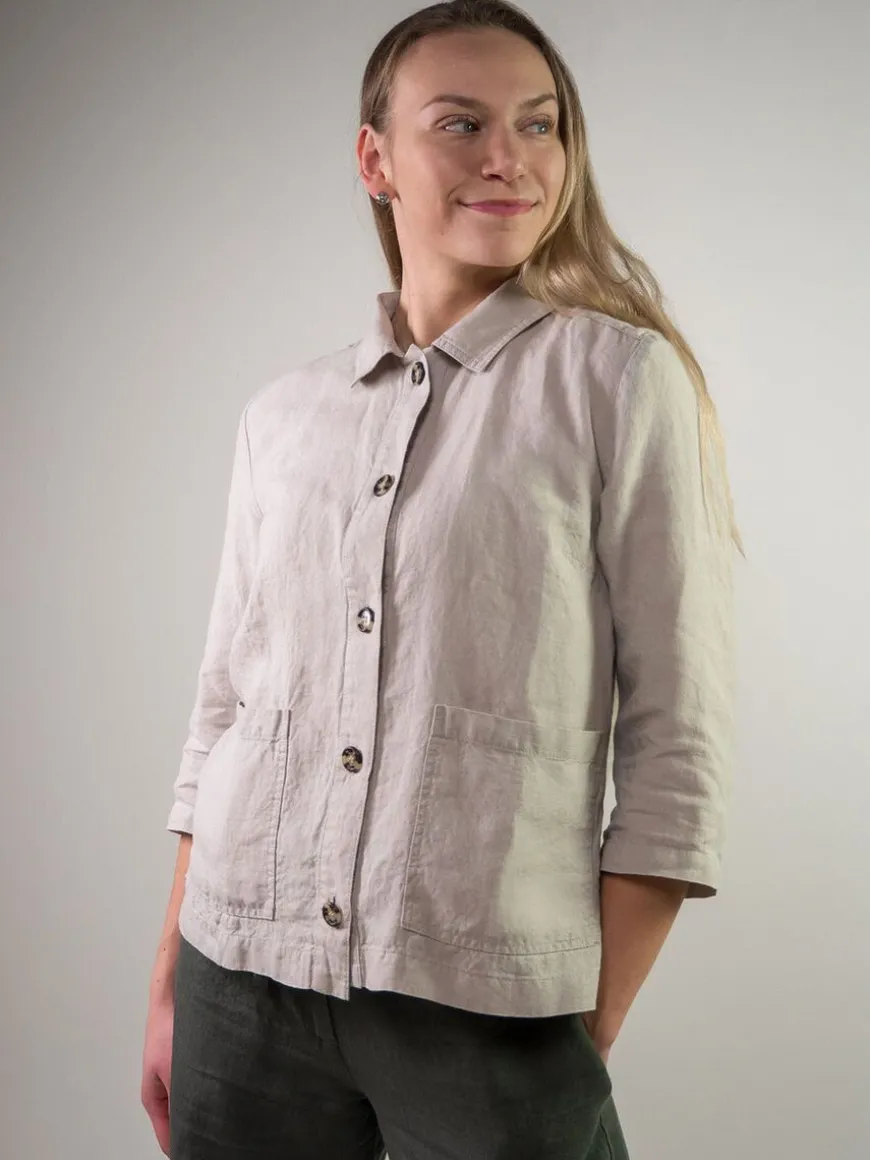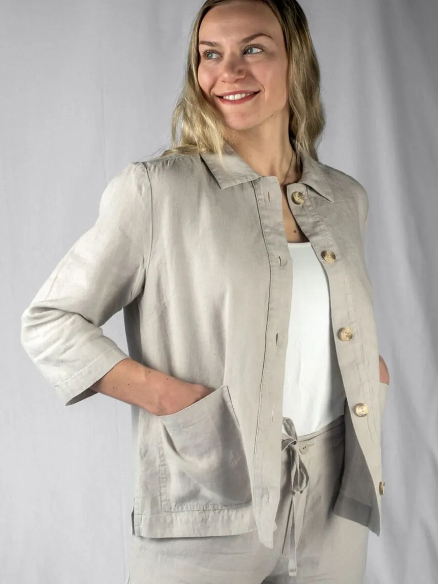 Cuosi -Merkin Elsa Pellavajakku Hiekan Sävyssä.Elsa On Lyhyt Vuoriton Worker-Tyylinen Paitajakku, Jossa Edessä On Reilunkokoiset Paikkataskut. Elsa Sopii Kevyeksi Kesäiseksi Heittojakuksi, Kun Tarvitset Jotain Peittävämpää Päällesi Viileän Sään Varalta. Voit Käyttää Sitä Myös Paidan Tapaan Kiinni Napitettuna. Se On Kätevä Ja Siisti Jakku Matkalle Mukaan. Tyylikkään Yhtenäisen Asukokonaisuuden Saat Yhdistämällä Jakun Cuosin Asta Pellavahousujen Kanssa!Malli On Suoralinjainen Ja Mitoitukseltaan Väljä. Hartiakaarrokke Ja Väljyyslaskokset Antavat Liikkumatilaa Selkäpuolelle. Hihat Ovat Suorat Ja Puolipitkät, Edessä Nappikiinnitys Ja Sivuissa Helmassa Pienet Halkiot. Elsa On Valmistettu Laadukkaasta Kauniisti Laskeutuvasta Ja Miellyttävän Tuntuisesta Pellavasta.