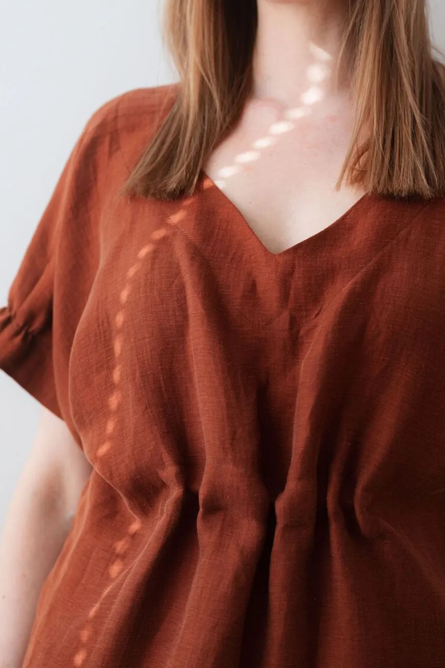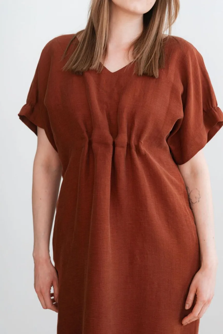 Feelk -Merkin Pääskysen Siivet Mekko Terrakotta Sävyssä.Pääskysen Siivet Mekko On Feelk:N ”Elämänpolku” -Mallistoa.Mekon Yksityiskohtana On Suunnittelijan Viesti, Tekstinauha, Joka On Ommeltu Mekon Sisäsaumaan:“Sinä Olet Yhtä Kuin Oma Polkusi, Ainutlaatuinen”.Pääskysen Siivet On Pohjemittainen Mekko, Joka On Valmistettu Pehmeästä Pellavakuprosta. Mekko Sopii Ihanasti Niin Arkeen Kuin Juhlaan, Kesällä Sellaisenaan Ja Viileämmillä Keleillä Voit Kerrostaa Pukemalla Alle Poolopaidan Ja Sukkahousut. Mekossa On Hienoinen Kiilto, Joka Antaa Vaatteelle Pientä Luksusta!Mekossa On V-Pääntie Sekä Edessä Että Takana, Ja Voitkin Käyttää Mekkoa Kummin Päin Vain! Selkäpuolen Pääntie On Hieman Avonaisempi. Vyötärössä On Edessä Ja Takana Kuminauhakuja ”Elämänpolku”, Joka Antaa Muotoa Mekolle. Kuminauhakuja On Vain Osittainen, Eli Ei Kierrä Koko Vyötäröä. Mekossa On Tilavat Sivutaskut Sekä Hihansuissa Myös Pienet Osittaiset Kuminauharypytykset.