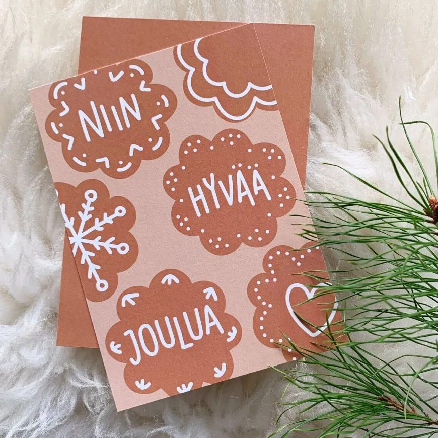 Helle Visuals -Merkin Joulukortit.Koko A6. Osoiteviivat Kääntöpuolella.Helle Visualsin Paperituotteet Painetaan Iisalmessa.