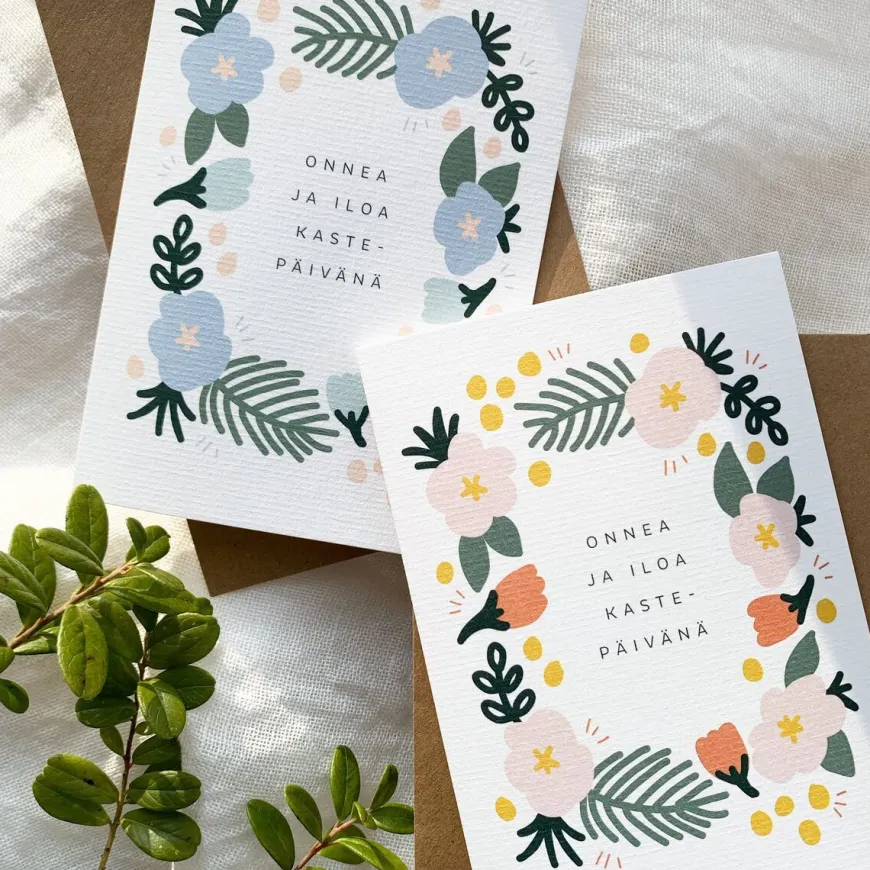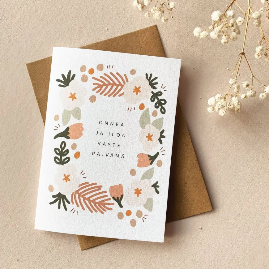 Helle Visuals Kaksiosainen Postikortti. Koko: A6 Ei Tekstiä Sisäpuolella. Painettu Ympäristösertifioidulle Taidekartongille Iisalmessa. Sisältää Ruskean Kierrätyspaperisen Kirjekuoren.