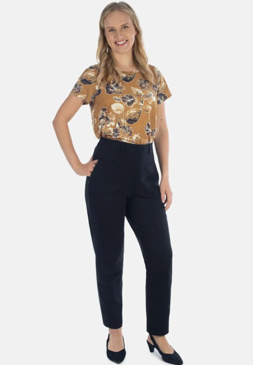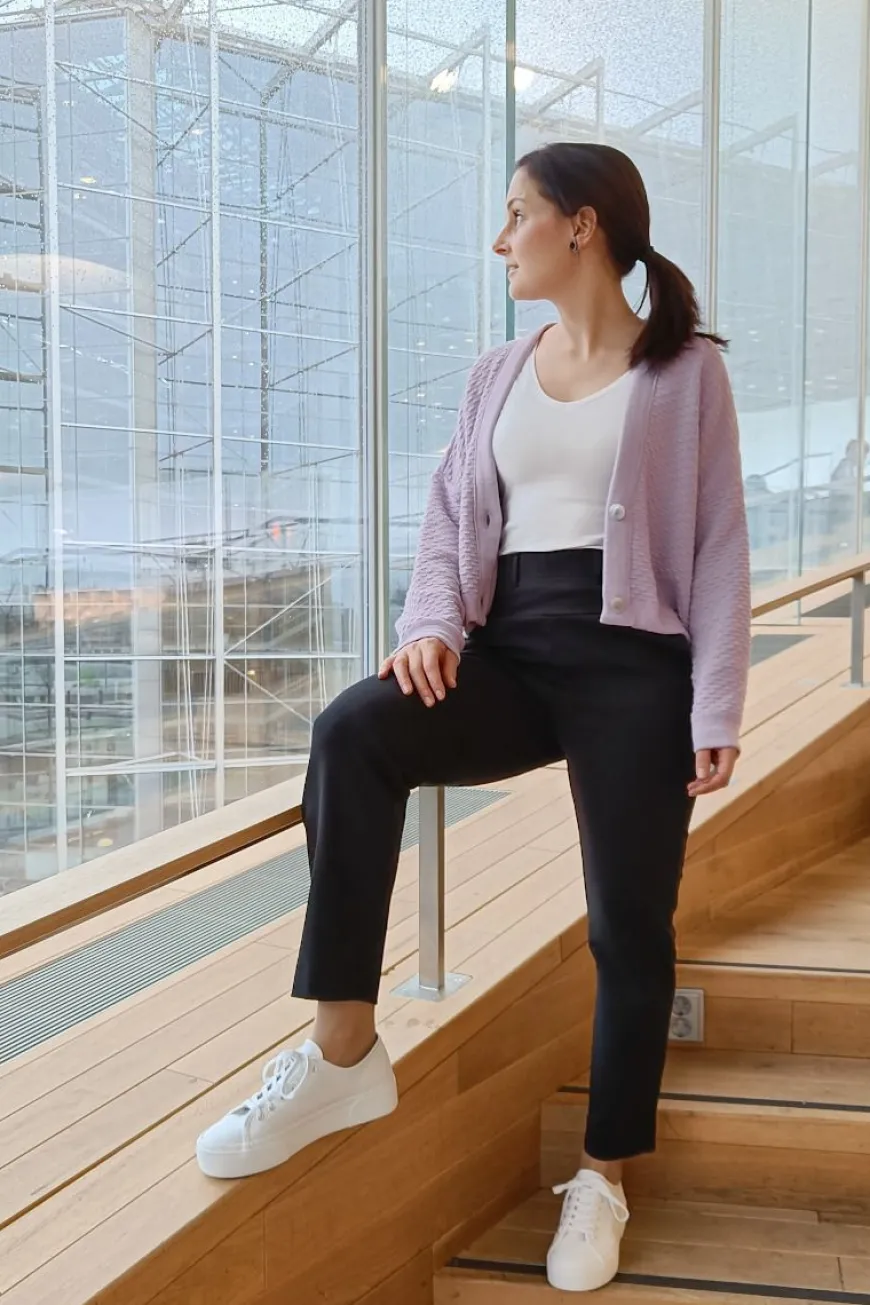 Hujaus -Merkin Bueno Housut Klassisena Mustana.Buenot Ovat Helppo Ja Tyylikäs Valinta, Kun Haluat Mukavat Housut Töihin Ja Vapaa-Aikaan. Housut On Helppo Yhdistää Osaksi Monenlaista Tyyliä Ja Tilannetta; Ne Sopivat Niin Tennareiden Ja Neuletakin Kanssa Rennompaan Päivään, Kuin Myös Korkkareiden Ja Bleiserin Pariksi Juhlavampaan Hetkeen. Housut Sopivat Käytettäväksi Hyvin Myös Lyhyemmänkin Paidan Kanssa.Näissä Naisten Housuissa On Korkea Vyötärö Mukavalla Leveällä Kuminauhalla, Ja Osin Kaksinkertaisella Kankaalla. Lisäksi Kivana Yksityiskohtana Vyönlenkit, Jotta Voit Täydentää Lookiasi Vyöllä Tarvittaessa! Lahkeen Malli On Suora Ja Pituus Hieman Vajaamittainen. Housuissa On Edessä Kätevät Taskut Ja Takana Valetaskut. Ponto Roma -Neulos On Joustava Päällä Ja Lookiltaan Siisti.