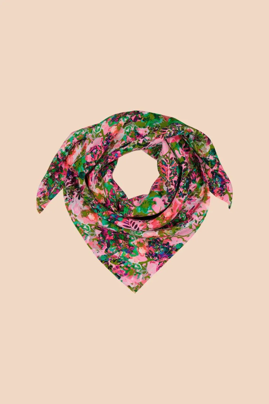Kaiko -Merkin Square Scarf Huivi Blooming Forest Bright Kuosissa.Neliöhuivi On Valmistettu Kauniisti Laskeutuvasta Kudotusta Kreppikankaasta. Monikäyttöisen Huivin Voi Kietaista Hiuksiin, Kaulalle, Päähän Tai Vaikkapa Laukun Koristeeksi. Huivin Reunat On Viimeistelty Kapealla Päärmeellä. Huivin Kuosina Kerroksellinen Ja Värikäs Blooming Forest Bright.