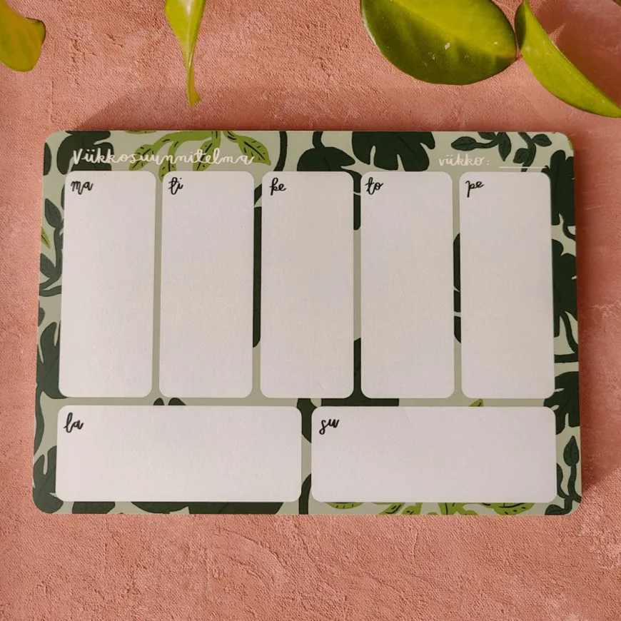 Pikku Paperi -Merkin Kasvien Keskellä Viikkolehtiö.Suunnittele Viikon Työtehtävät, Ruuat Tai Harrastukset Tähän Suloiseen Viikkolehtiöön 3 Lehtiössä On 52 Sivua, Eli Sivu Jokaiselle Vuoden Viikolle. Lehtiö On A5-Kokoinen.Paperi On Laadukasta Ja Ihanan Sileän Tuntuista 120G Paperia.Painettu Ja Suunniteltu Helsingissä. Suunnittelu Noora / Pikku Paperi.