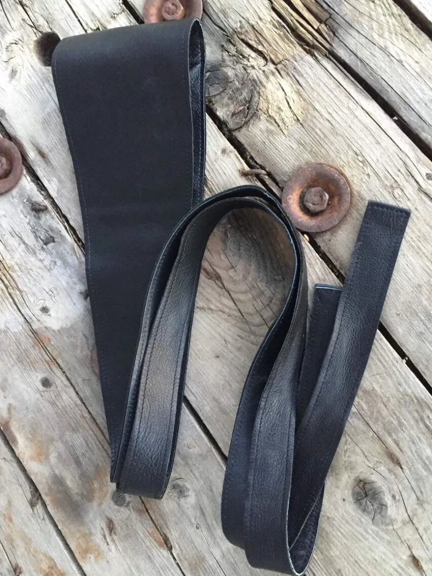 Kiedo -Merkin Rakastettu Leveä Kietaisuvyö Klassisena Mustana.Monien Eri Asujen Ja Vaatteiden Kanssa Sopiva Kietaisuvyö Saa Lookisi Hetkessä Eri Näköiseksi. Kiedotaan Kahdesti Vartalon Ympäri, Ja Voit Solmia Sen Usealla Eri Tavalla. Sopii Ihanasti Etenkin Mekkojen Ja Hameiden Kanssa.Vyön Miehusta On Teollisuuden Ylijäämänahkaa, Osassa Vöistä Vuori On Tehty Vintage-Nahasta, Eli Vanhoja Nahkavaatteita Hyödyntäen. Kestävä Valinta, Joka Vain Paranee Käytössä!Leveä Soljeton Käsintehty Kietaisuvyövuoritettu, Kaksinkertaista Nahkaa, Vuori Ei Värjäänoin 12 Cm Leveimmillään, Miehusta Kapenee Nauhoja Kohtipituus 240 Cm(Xs-L = 75-95Cm Vy)Kauniit Noin 3 Cm Nahkanauhat