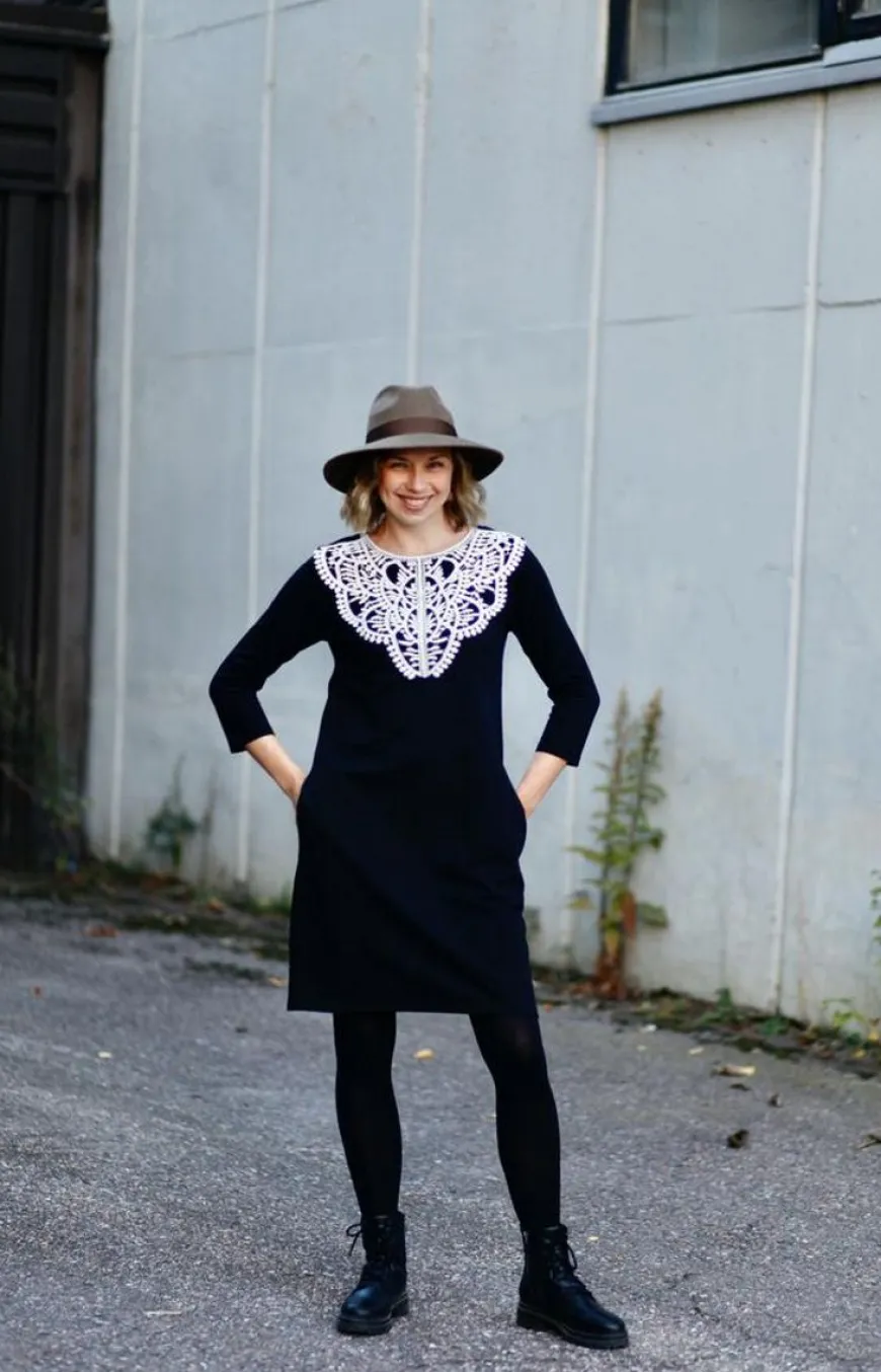 Lumoan -Merkin Musta Elise Mekko.Elise On Kaunis Pitsimekko, Jossa On Erityisen Näyttävä Pitsi. Klassinen Musta Väri Takaa Mekon Monikäyttöisyyden Ja Ajattomuuden – Mekko Sopii Kaikkialle Arjen Toimistopäivistä Ja Lounastreffeistä, Juhlaan Sekä Vapaa-Ajalle 3Elisen Hillityn A-Linjainen Leikkaus Sopii Monelle Eri Vartalotyypille. Siinä On 3/4 Hihat Ja Taskut Sivusaumoissa. Uutta Ilmettä Mekkoon Saa Lisäämällä Vyötärölle Mekon Mukana Tulevan Kapean Vyön, Tai Vaihtamalla Tilalle Oman Kaapin Lempparivyön!