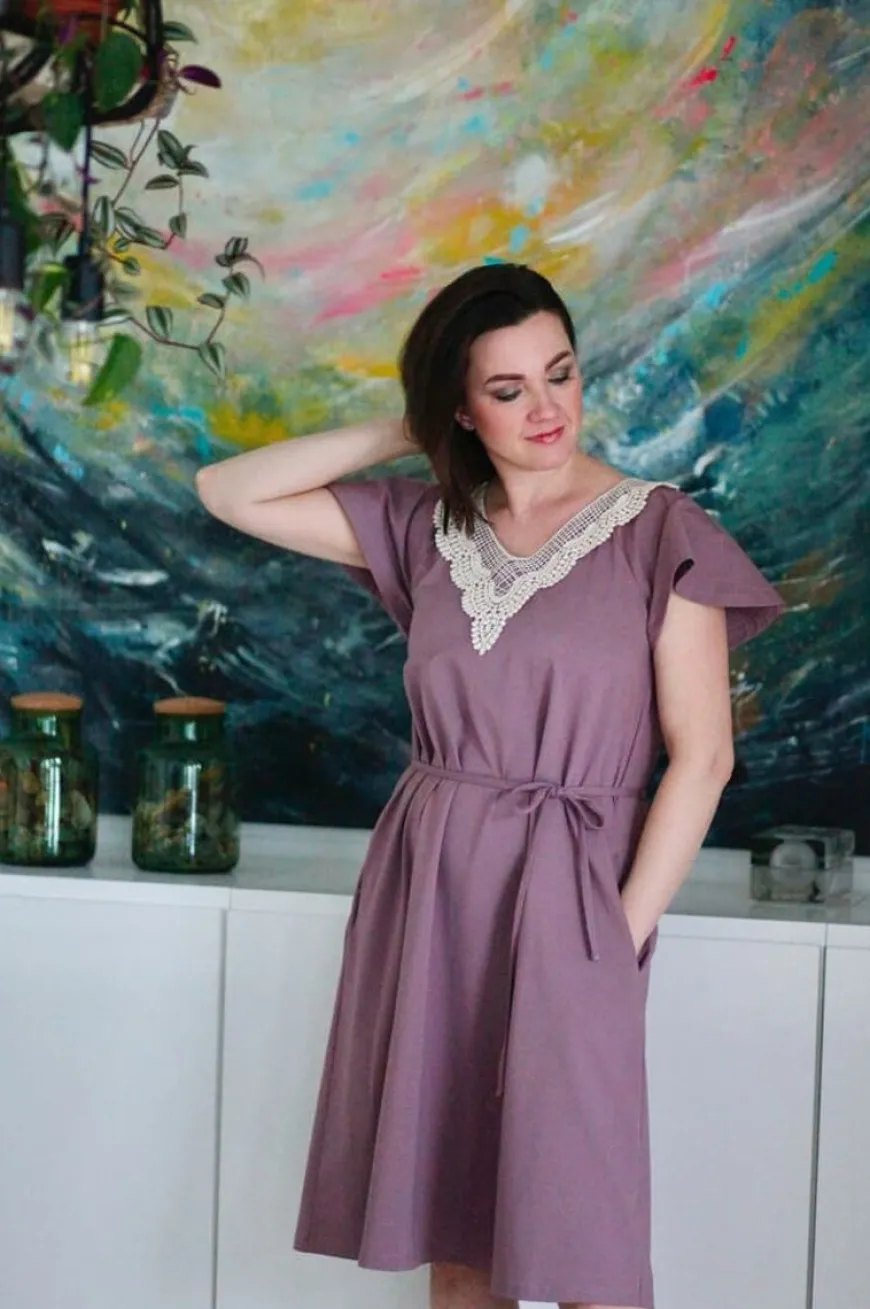 Lumoan -Merkin Kaiho Mekko Kauniissa Mauven Sävyssä.Herkkä Ja Naisellinen Mekko, Jossa Katseet Kääntävän Kaunis Pitsipääntie Ja Ihanat Perhoshihat. Kaiho Sopii Hyvin Niin Arkeen Kuin Juhlaankin Asustamalla Tilanteeseen Sopivalla Tavalla.Mekon A-Linjainen Siluetti Imartelee Kaikkia Vartaloja Ja Mukana Tulevalla Kapealla Vyöllä Saat Helposti Muutettua Vaatteen Ilmettä – Kuro Vyötäröä Esiin Tai Jätämekko Rennommaksi Ilman Vyötä. Sivusaumoissa On Kätevät Taskut.
