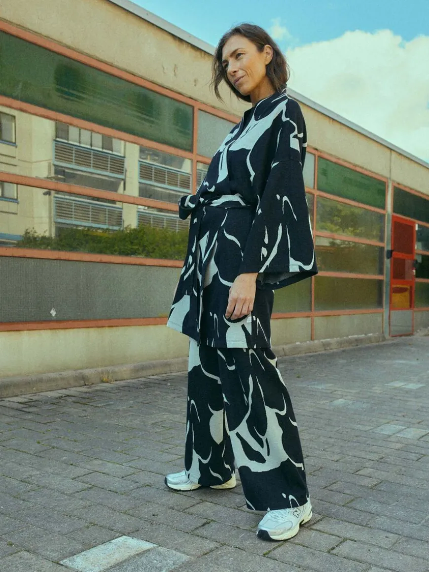 Mainio -Merkin Waving Neuloshousut. Upealla Kuosilla Varustetut Housut Arkeen Ja Vapaa-Aikaan! Pue Yksiväristen Yläosien Kanssa Tai Yhdistä Saman Kuosin Paidan Kanssa Yhtenäisen Lookin Luomiseksi. Rohkein Pukee Myös Saman Kuosin Kimonon Paidan Ja Housujen Kanssa!Housuissa On Jacquard-Neulottu Waving Kuvio. Mukava Joustava Vyötärö.
