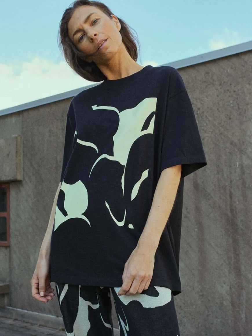 Mainio -Merkin Waving T-Paita.Upealla Kuosilla Varustettu Teeppari Arkeen Ja Vapaa-Aikaan! Pue Yksiväristen Alaosien Kanssa Tai Yhdistä Saman Kuosin Housujen Kanssa Yhtenäisen Lookin Luomiseksi. Rohkein Pukee Myös Saman Kuosin Kimonon Paidan Ja Housujen Kanssa!Ihanan Pehmeässä Luomupuuvillaisessa T-Paidassa On Waving Etuprintti. Slub-Lanka Antaa Materiaalille Eläväpintaisen Meleeratun Efektin.