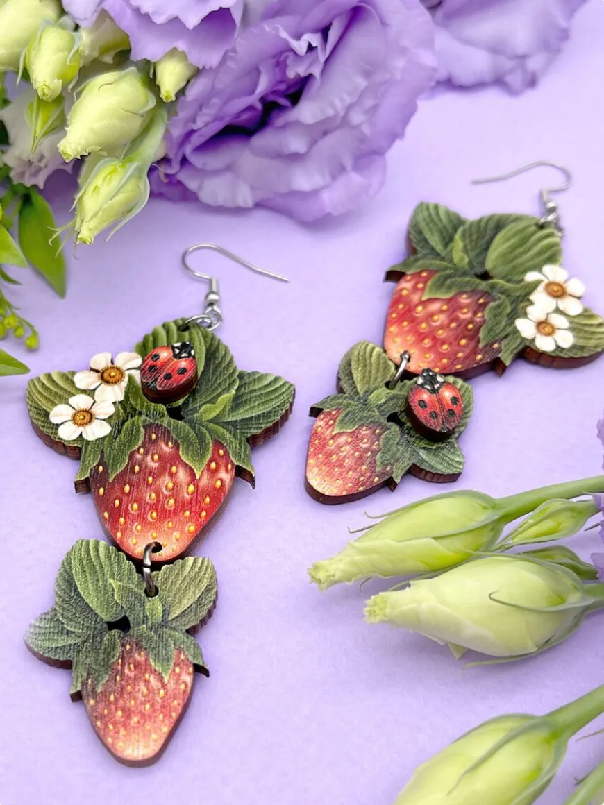 Design By Kieto -Merkin Ihanat Mansikka Korvakorut.Koko:Leveys: 4 Cm Korkeus: 9,6 Cm (Koukku On Laskettu Mukaan) Vanerin Paksuus: 3 Mmkorun Puuosa On Suomalaista Koivuvaneria, Metalliosat Ruostumatonta Terästä. Koru On Molemmin Puolin Kuvioitu. Mukana Tulee Silikoniset Stopparit.Koru On Pakattu Kauniisti Kukkivaan Design By Kieto -Rasiaan. Valmistettu Suomessa.
