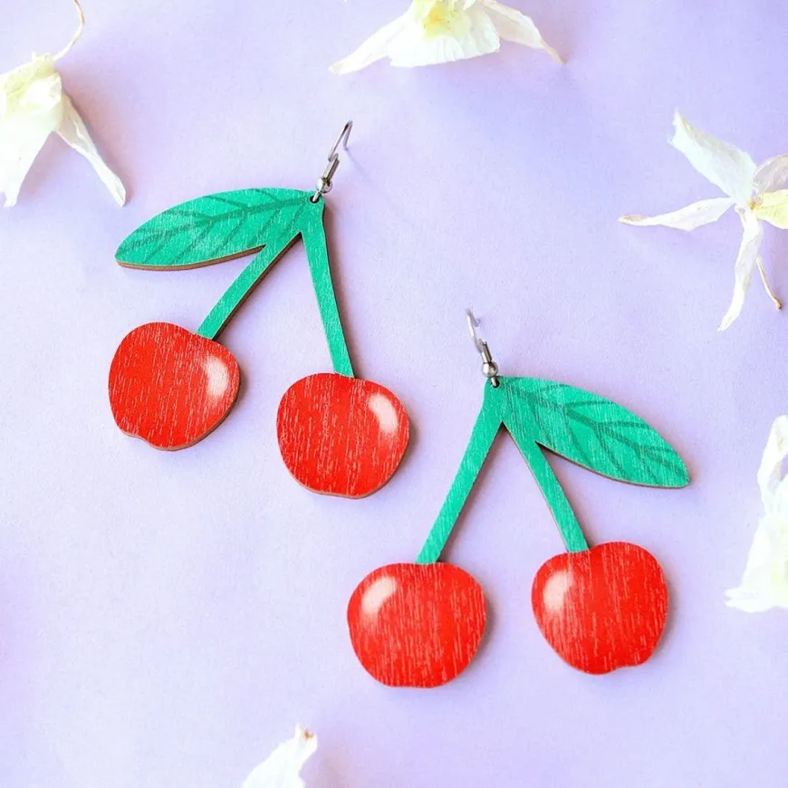 Mia Minerva -Merkin Cherry Korvakorut.Kauniit Kirsikka Korvikset Arkeen Ja Kesän Juhliin.Korujen Kuvat On Toistensa Peilikuvat. Painettu Molemmin Puolin.Koko: N. 6 X 5,5 Cm (Ilman Koukkua)Korvakorut Valmistetaan Pefc & Fsc-Sertifioidusta Suomalaisesta Koivuvanerista. Metalliosat Ovat Ruostumatonta Terästä.Korvikset Valmistetaan Käsin, Joten Tuotteiden Välillä Saattaa Olla Pientä Eroa. Toimitetaan Kierrätyskartogista Valmistetussa Kauniissa Lahjarasiassa, Jossa Korviksia Kannattaa Myös Säilyttää.Valmistettu Suomessa.