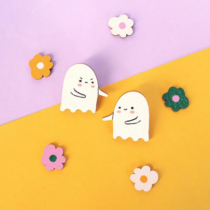 Mia Minerva -Merkin Ghost Plas Pinssit.Suloiset Kummituskaverit Pinssit Sopii Kivasti Paidankaulukseen, Laukkuun Tai Baskeriisi. Koko: N. 3,5 X 3,5 Cmpinssit Valmistetaan Pefc-Sertifioidusta Suomalaisesta Koivuvanerista. Metalliosat Ovat Ruostumatonta Terästä.Pinssit Valmistetaan Käsin, Joten Tuotteiden Välillä Saattaa Olla Pientä Eroa. Valmistettu Suomessa.