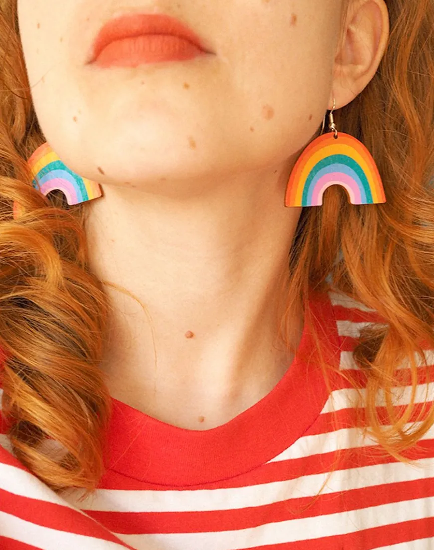Mia Minerva -Merkin Rainbows Korvakorut.Kauniit Sateenkaari Korvikset Toimistolle Ja Vapaa-Aikaan. Korujen Kuvat Painettu Molemmin Puolin.Koko: N. 3.5 X 5 Cm Korvakorut Valmistetaan Pefc & Fsc-Sertifioidusta Suomalaisesta Koivuvanerista. Metalliosat Ovat Ruostumatonta Terästä.Korvikset Valmistetaan Käsin, Joten Tuotteiden Välillä Saattaa Olla Pientä Eroa. Toimitetaan Kierrätyskartogista Valmistetussa Kauniissa Lahjarasiassa, Jossa Korviksia Kannattaa Myös Säilyttää.Valmistettu Suomessa.