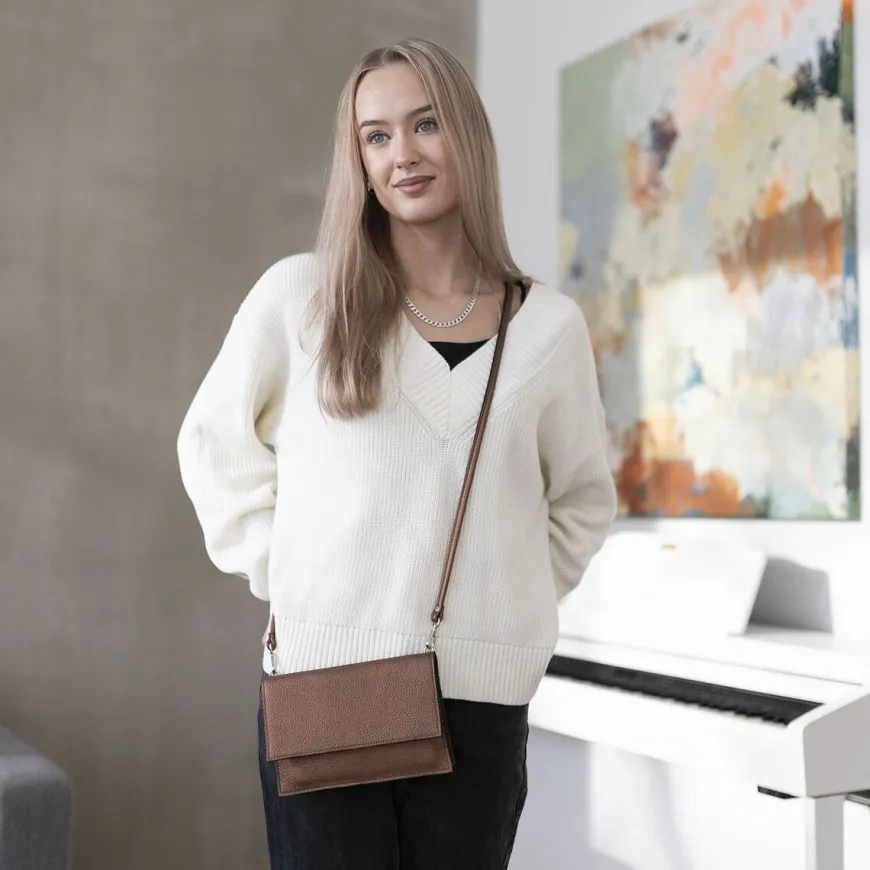 Miiko Design -Merkin Tuike Nahkalaukku Kuparisena.Miikon Kevään Upea Uutuuslaukku 3Hirvennahkaisessa Tuike Laukussa Juuri Sopivasti Tilaa Kännykälle, Kukkarolle, Avaimille Ja Huulirasvalle. Tuike Laukku Suljetaan Kätevästi Nepparilla. Laukun Sisällä Kaksi Isompaa Osiota Ja Niiden Välissä Pienempi Tasku. Tuike Laukku On Monikäyttöinen, Ja Minimalistinen Sekä Ajaton Tyyli Sopii Loistavasti Myös Juhlavampien Asujen Kaveriksi. Tämä Kotimainen Nahkalaukku Piristää Monet Asut Ja Huolehtii, Että Tärkeimmät Tavarat Pysyvät Menossa Mukana!Miikon Käyttämä Nahka On Peräisin Pohjolan Metsissä Käyskentelevistä Hirvistä. Hirvennahka Valmistetaan Vastuullisesti Suomessa – Hirviä Ei Lopeteta Nahan Vuoksi. Materiaalina Hirvennahka On Unelmaisen Pehmeää. Aito Luonnonmateriaali On Kestävää Ja Se Säilyy Kauniina Vuodesta Toiseen.Koko: 20 X 13,5 Cmhihnan Pituus: 118 Cm