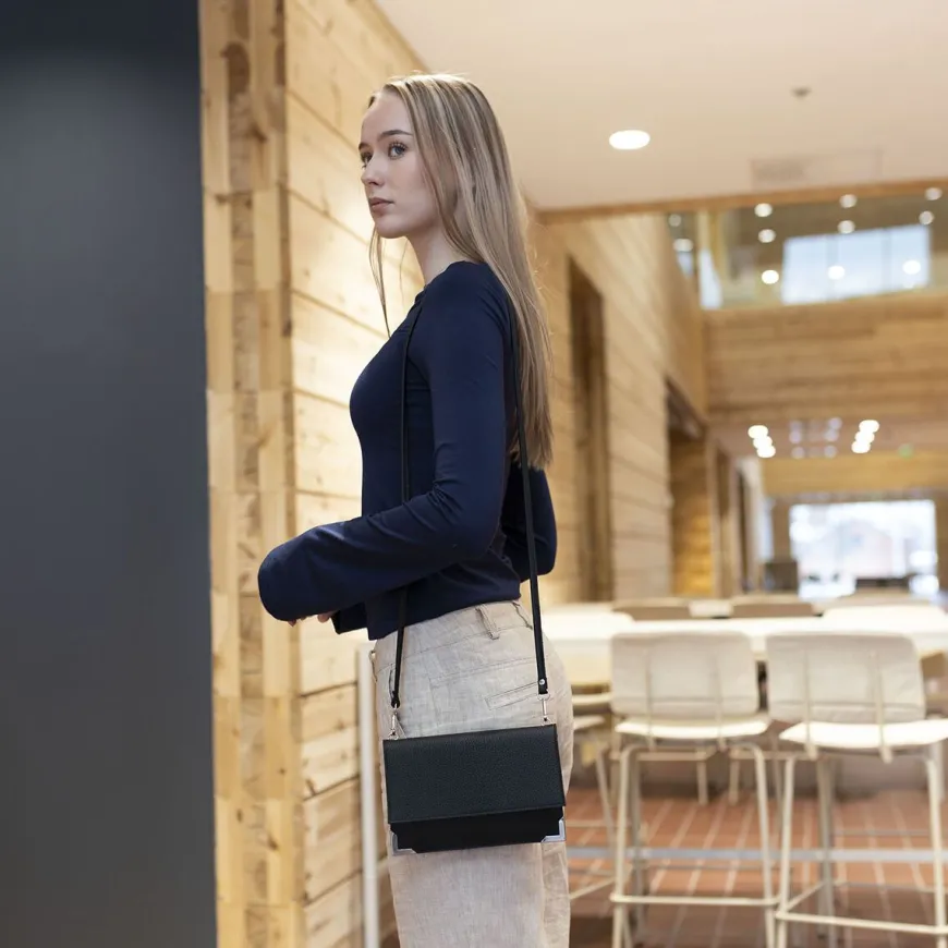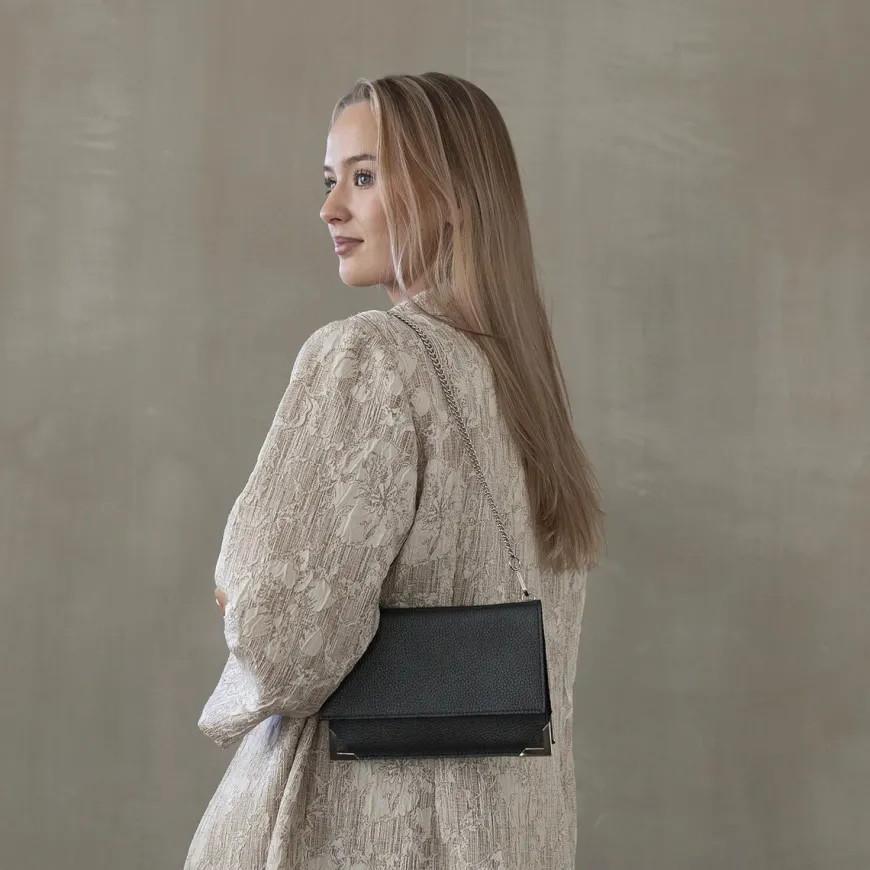 Miiko Design -Merkin Välke Laukku Mustana.Uusi Lempilaukku Etsinnässä Tutustu Upeaan Välke Hirvennahkalaukkuun 3Tässä Olkalaukussa Yhdistyvät Tyyli, Käytännöllisyys Ja Ekologisuus. Välke Nahkalaukku On Suunniteltu Niin Arjen Kiireisiin Kuin Juhlavampiin Menoihin, Siinä On Sopivasti Tilaa Kännykälle, Kukkarolle, Avaimille Ja Huulirasvalle.Välke Laukku Sulkeutuu Kätevästi Nepparilla Ja Sen Sisällä On Kaksi Tilavaa Osiota, Joita Erottaa Kätevä Pieni Tasku. Välke Laukku On Monikäyttöinen, Sen Ajaton Tyyli Sopii Täydellisesti Niin Rentoihin Kuin Juhlaviinkin Asuihin. Lisää Eleganssia Laukkuun Saat Vaihtamalla Mukana Tulevan, Lyhyemmän Ketjuhihnan Nahkahihnan Tilalle. Ilman Hihnaa Voit Käyttää Välkettä Myös Clutch-Laukkuna.Koko: 20 X 13,5 Cmhihnan Pituus: 118Cm, Ketjuhihna 62Cm