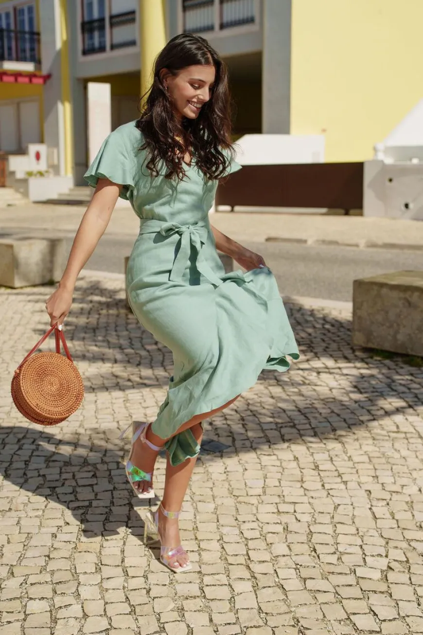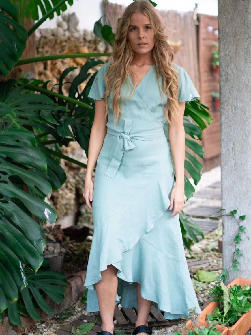 Nakoa -Merkin Annika Mekko Desert Sage Sävyssä.Annika Dress On Naisellinen Katseenvangitsija, Jonka Yhdistelymahdollisuudet Ovat Rajattomat! Jo Itsessään Mekko On Näyttävä Valinta, Mutta Se Sopii Myös Kerrostettavaksi Neuleen, Trenssin Tai Nahkatakin Pariksi. Tätä Mekkoa Imartelevat Niin Korot, Maiharit, Tennarit Kuin Paljaatkin Jalat. Etsit Mekkoa Sitten Kesän Juhliin Tai Monipuoliseen Arkeen, Valekietaisumekko Toimii Tilanteeseen Kuin Tilanteeseen.Valekietaisumalli Ja Eri Tavoin Solmittava Vyötärönauha Varmistavat Istuvuuden Jokaiselle Vartalolle, Ja Imartelevat Muotoleikkaukset Luovat Kauniin Siluetin Korostaen Juuri Oikeita Kohtia. Helmassa Ja Hihoissa Toistuvat Hulmuavat, Aaltoilevat Muotolaskokset Laskeutuvat Kauniisti. 100% Pellavasta Valmistettu Mekko On Midimittainen, Ja V-Pääntien Siluetti Toistuu Helman Leikkauksessa. Mekon Helmassa On Vuori.