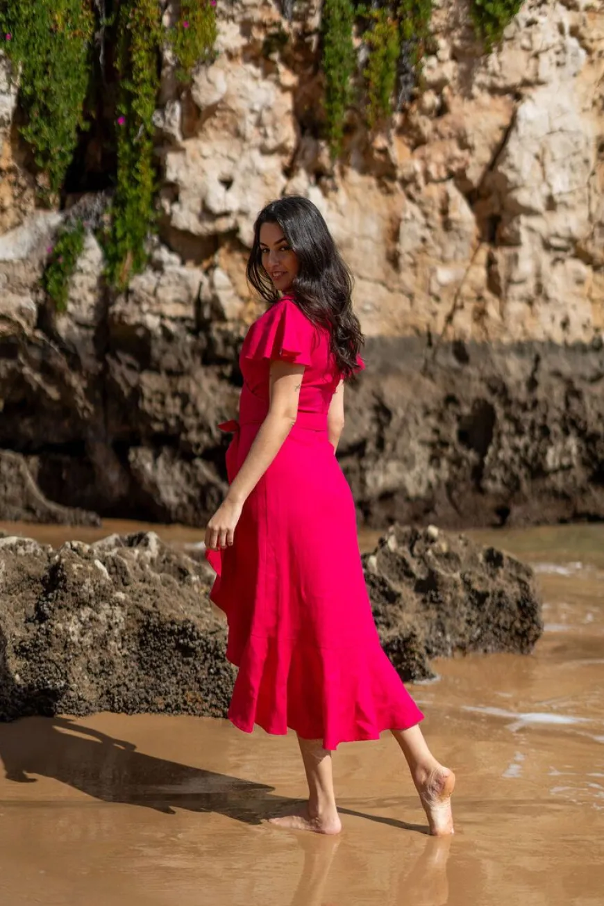 Nakoa -Merkin Annika Mekko Pink Peacock Sävyssä.Annika Dress On Naisellinen Katseenvangitsija, Jonka Yhdistelymahdollisuudet Ovat Rajattomat! Jo Itsessään Mekko On Näyttävä Valinta, Mutta Se Sopii Myös Kerrostettavaksi Neuleen, Trenssin Tai Nahkatakin Pariksi. Tätä Mekkoa Imartelevat Niin Korot, Maiharit, Tennarit Kuin Paljaatkin Jalat. Etsit Mekkoa Sitten Kesän Juhliin Tai Monipuoliseen Arkeen, Valekietaisumekko Toimii Tilanteeseen Kuin Tilanteeseen.Valekietaisumalli Ja Eri Tavoin Solmittava Vyötärönauha Varmistavat Istuvuuden Jokaiselle Vartalolle, Ja Imartelevat Muotoleikkaukset Luovat Kauniin Siluetin Korostaen Juuri Oikeita Kohtia. Helmassa Ja Hihoissa Toistuvat Hulmuavat, Aaltoilevat Muotolaskokset Laskeutuvat Kauniisti. 100% Pellavasta Valmistettu Mekko On Midimittainen, Ja V-Pääntien Siluetti Toistuu Helman Leikkauksessa. Mekon Helmassa On Vuori.