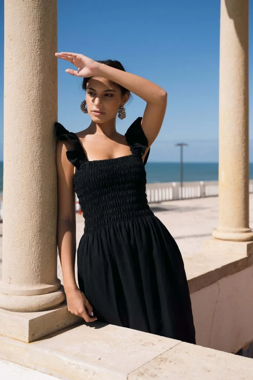 Nakoa -Merkin Ariela Mekko Klassisena Mustana.Ihastuttava Ariela On Smokkirypytyksellä Varustettu Kaunis Ja Imarteleva Mekko Arkeen Ja Juhlaan! Trendikkäässä Pellavamekossa On Lyhyet, Poimutetut Hihat Sekä Vartalonmyötäinen Smokkirypytys, Joka Luo Todella Kauniin Ja Naisellisen Istuvuuden.Chic-Tyylinen Pellavamekko On Erinomainen Valinta Arkeen Ja Juhlaan, Sillä Saat Asustamalla Siitä Monikäyttöisen Vaatekaapin Suosikin. Pellava Tuo Ripauksen Luksusta Arkeesi, Ollen Samalla Luonnonmukainen Ja Pitkäkestoinen Materiaali.Mekon Käyttömukavuutta Täydentää Sivutaskut Ja Se Laskeutuu Hieman Polven Alapuolelle.
