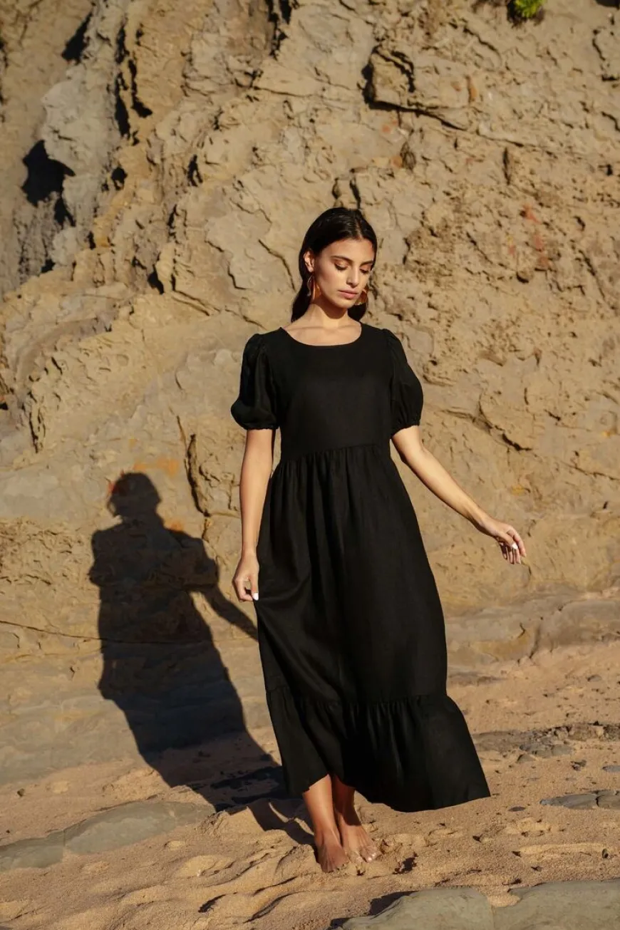 Nakoa -Merkin Astrid Mekko Klassisena Mustana.Kesän Trendikäs Uutuus Pellavamekko On Monikäyttöinen Astrid Dress! Upeasti Laskeutuva 100% Pellavakerrosmekko On Kesän Luottotuote, Joka On Helppo Stailata Omaan Tyyliin Sopivaksi. Astrid On On Väljä, Mutta Imarteleva Kesämekko, Jossa On Ihanan Muhkeat Hihat. Pitkä Pellavamaksimekko On Huoleton Ja Naisellinen Valinta Lämpimiin Päiviin. Tämän 100% Pellavaisen Maximekon Kerrokset Luovat Mekkoon Kauniin Siluetin. Kevyt Ja Huoleton Pellava Sopii Niin Kesäpäivän Helteeseen Kuin Viilenevään Iltaan.
