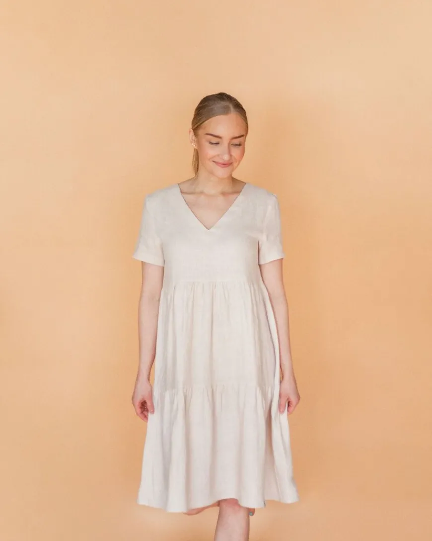 Nakoa -Merkin Pellavakerrosmekko Sandshell Sävyssä.Ikoninen Nakoan Pellavamekko Tuo Ripauksen Luksusta Arkeen! Trendikäs Pellava Sopii Täydellisesti Niin Helteiseen Kesäpäivään Kuin Viilenevään Kaupunki-Iltaan. Pellava Tuntuu Ihoa Vasten Mukavan Hengittävältä Ja Kevyeltä. Kerrokset Toimivat Viehättävänä Yksityiskohtana Ja Luovat Kauniin Siluetin.Täydellinen Kesäasu Syntyy Cross Bag -Laukun Sekä Aurinkolasien Kanssa. Syksyllä Mekko Sopii Kauniisti Neuleen Ja Saappaiden Pariksi. Kaunis Nakoan Pellavasta Valmistettu Kerrosmekko On Täydellinen Valinta Niin Juhlapäivään Kuin Leikkikentälle!