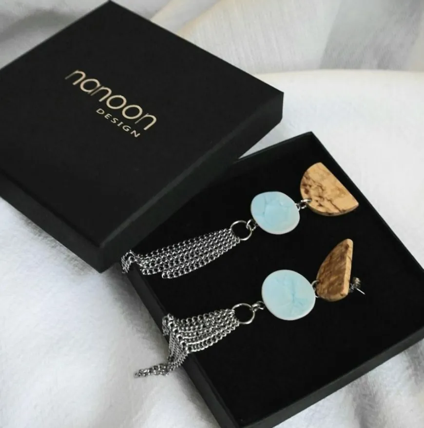 Nanoon Design -Merkin Koski Korvakorut.Korvakoruissa Yhdistyy Posliini, Lasi Sekä Luonnonkaunis Visakoivu. Posliiniosan Päälle Sulatettu Lasi On Kierrätyslasia. Posliini- Ja Puuosat On Valmistettu Alusta Loppuun Käsityönä, Minkä Ansiosta Korun Jokainen Osa On Oma Yksilönsä. Korujen Osissa Satunnaisesti Vaihteleva Kuviopinta On Kuin Sormenjälki, Joka Tekee Jokaisesta Korusta Uniikin. Korujen Sävyissä Tai Kuviopinnoissa Saattaa Esiintyä Vaihtelua, Joka Kuuluu Materiaalien Luonteeseen. Mitat:Korkeus: N. 10 Cmleveys: N. 2,3 Cmpaino: N. 5 G /Yksi Korumateriaalit:Visakoivu On Ylijäämäpuuta Ja Hattulassa Tontin Raivaamisessa Kaadettua Visakoivua. Puuosat On Käsitelty Kestäviksi Kasviöljy- Ja Luonnonvahapohjaisella Puuvahalla. Korujen Metalliosat Ovat Allergiavapaata Ja Tummumatonta Kirurginterästä. Korut Pakattu Mustaan Nanoon Design Logolliseen Rasiaan. Valmistettu Suomessa.
