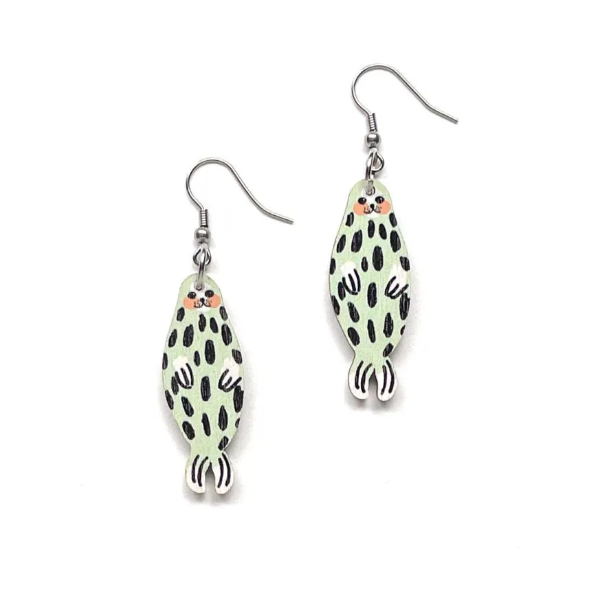 Crazy Granny Designs -Merkin Pienet Norppa Korvakorut Mintun Sävyssä.Mitat:Korkeus: 38 Mmleveys: 14 Mmmateriaali: Suomalainen Koivuvaneri, Kuvio On Digitaalisesti Printattumetalliosat: Ruostumaton Teräs Mukana Tulee Silikoniset Tapit, Jotta Korvikset Pysyvät Varmasti Mukana Menoissa.Vältä Korvakorujen Joutumista Veden Tai Kemikaalien (Esim. Hiuslakan Jne.) Kanssa Kosketuksiin.Korut Suunnitellaan Ja Valmistetaan Suomessa.