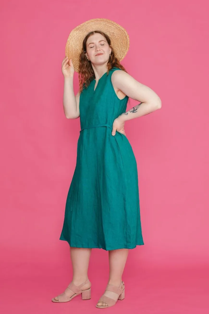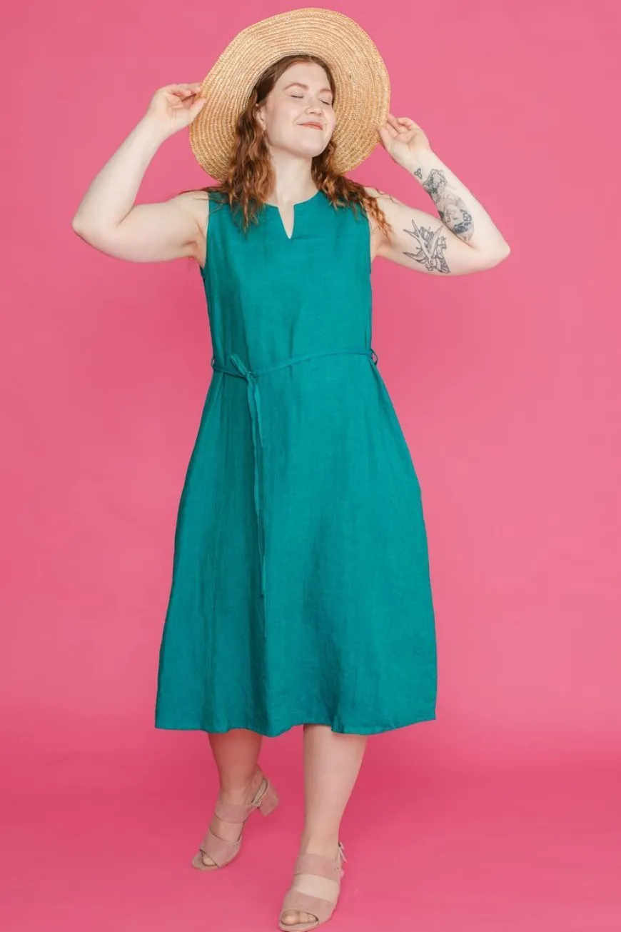 Nouki -Merkin Smaragdi Sävyinen Hay Midimekko.Klassinen, Mutta Hivenen Boheemi Kesämekko Midimittaisella Helmalla. Tämä Väljä, Hihaton Pellavamekko On Täydellinen Valinta Kesäpäiviin! Pellava On Hyvin Hengittävä Materiaali, Ja Mekon Pieni Väljyys Saa Sinut Pukemaan Hayn Kesällä Uudestaan Ja Uudestaan.Mekko On A-Linjainen, Senhelma On Takaa Hieman Pidempi Ja Kauluksessa On Kaunis V-Halkio. Mukana Tulevalla Vyöllä Saat Mekon Fiilistä Vaihdettua Helposti. Materiaalina Pehmeä Ja Hengittävä 100% Pellava. Kangas On Kudottu Sekoitellen Sinistä Ja Vihreää Lankaa, Mikä Luo Kankaalle Poikkeuksellisen Syvän Ja Eläväisen Sävyn.
