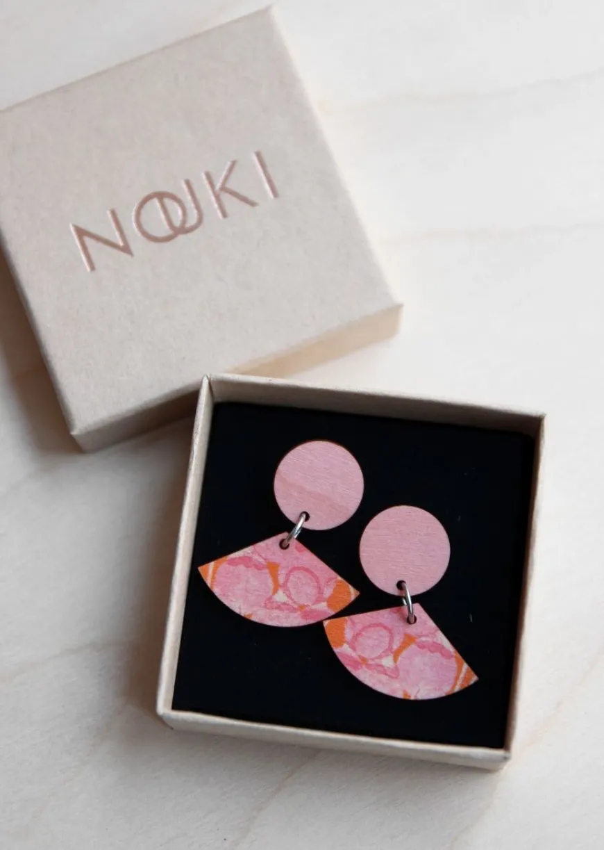 Noukin Pikku-Viuhka Nappikorvakorut Pinkin Ja Oranssin Sävyisessä Valokas Kuosissa.Koko:Vanerin Paksuus: 3 Mmkorun Pituus: 3,5 Cmleveys Korun Leveimmästä Kohdasta: 2 Cmmateriaali: Kotimainen Koivuvanerimetalliosat: Ruostumaton Teräskorut On Suunniteltu Tampereella.Printattu Ja Laserleikattu Helsingissä.Tuotteella On Avainlippu-Merkki.Kuosin Suunnittelu: Suvi Pouttusäilytä Ja Kuljeta Koruja Aina Niiden Mukana Tulevassa Rasiassa. Vältä Vanerikorujen Turhaa Kastelemista.