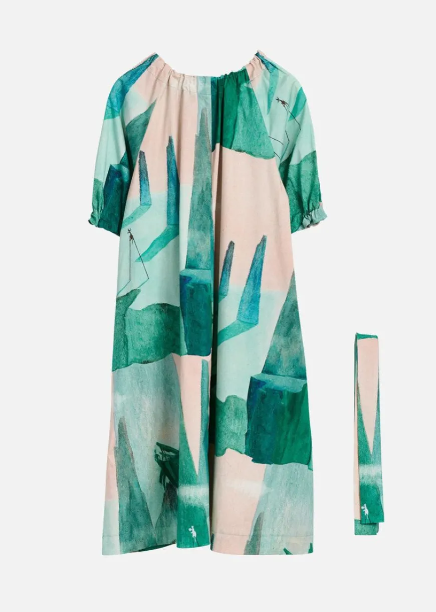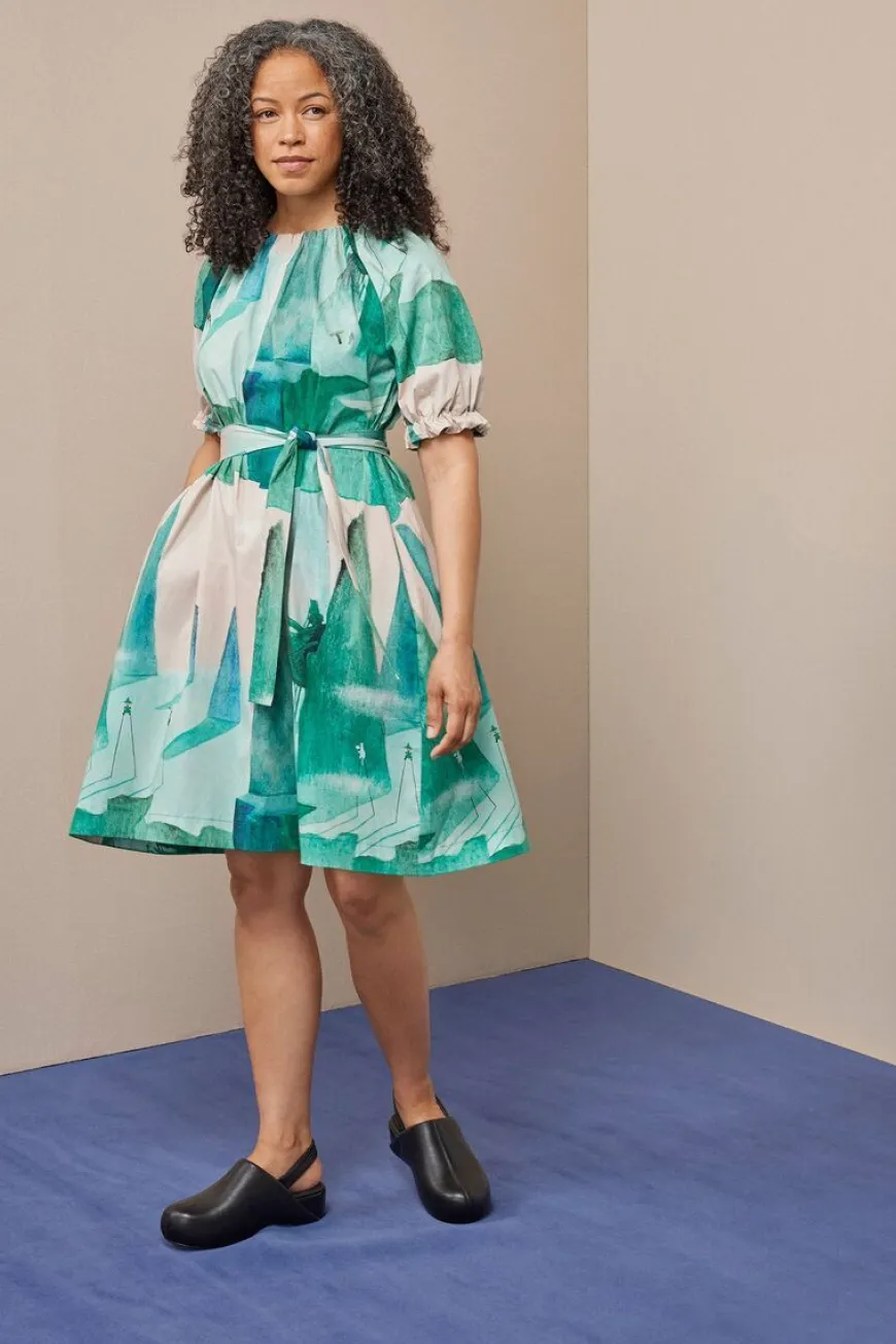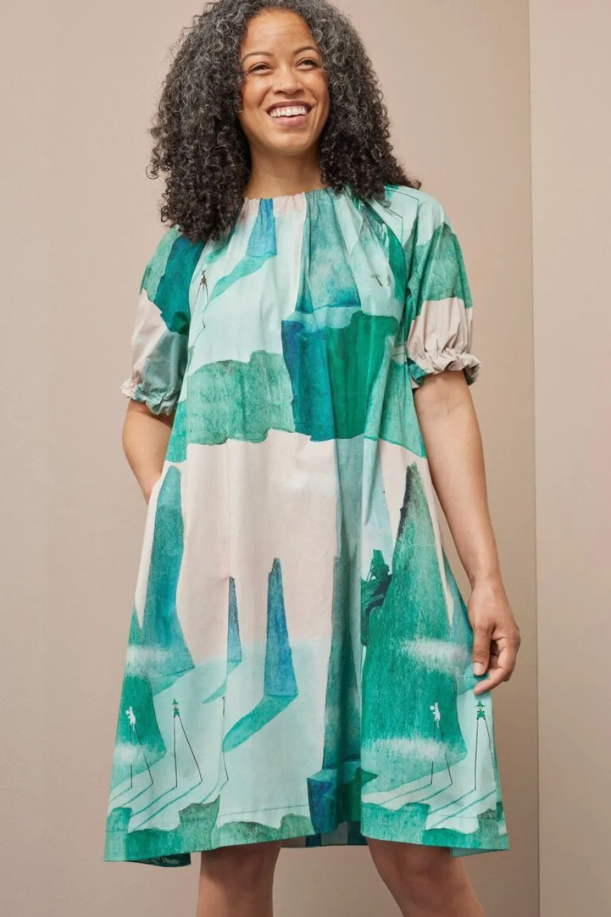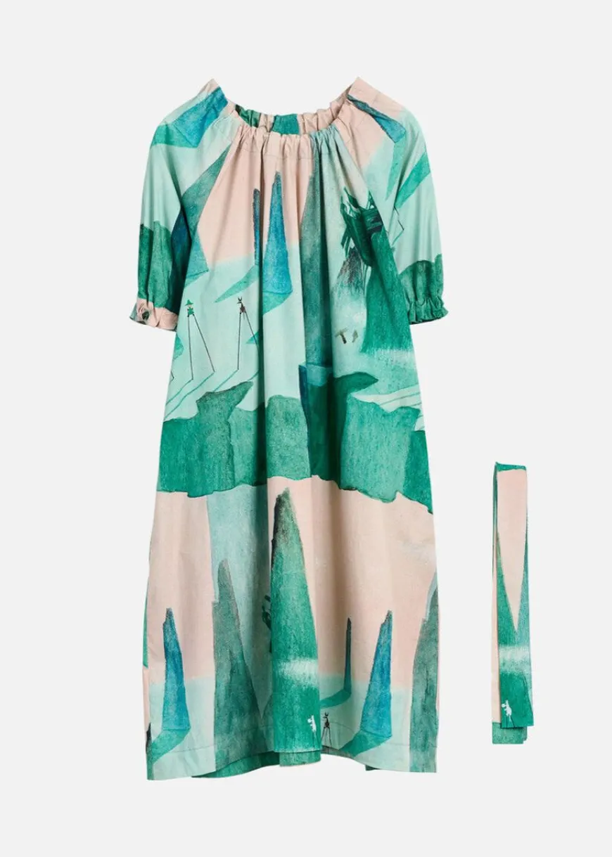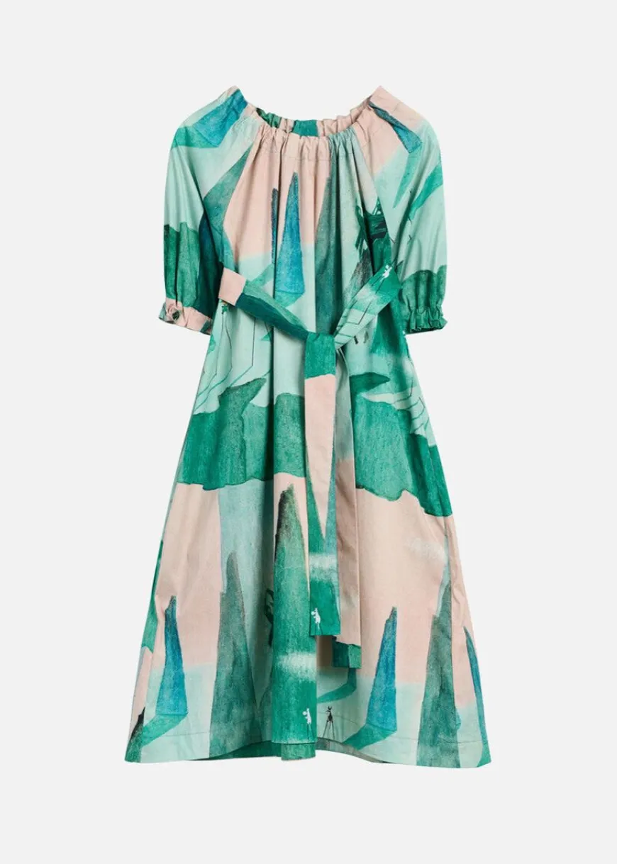 Papu -Merkin Pouch Mekko Shine Kuosilla.Papun Yhteistyö Moomin Charactersin Kanssa Jatkuu! Shine Malliston Tuotteissa Nähdään Vesiväreillä Maalattu Kuosi, Joka On Mukaeltu Tove Janssonin Luomasta Muumipeikko Ja Pyrstötähti -Kirjan Kuvituksesta. Kuvassa On Muumipeikko, Nipsu Ja Nuuskamuikkunen, Jotka Matkustavat Puujaloilla Kuivuneen Meren Pohjassa.Tove Janssonin Herkkä Siveltimenjälki Sekä Vivahteikas Värienkäyttö Korostuu Kauniilla Tavalla Kuosissa. Papu On Aina Ihaillut Paitsi Tove Janssonin Omaleimaisia Kuvituksia, Myös Hänen Tarinoitaan, Joista Löytyy Pinnan Alta Vahva Arvopohja. Tove Janssonin Teoksista Välittyy Rohkeus, Tasa-Arvoisuus Ja Edelläkävijyys. Muumien Kautta Jansson Nostaa Esiin Oman Tien Kulkemisen Ja Suvaitsevaisuuden Merkitystä, Ja Tämän Tänäkin Päivänä Ajankohtaisen Sanoman Takana On Helppo Seistä.Pouch On A-Linjainen Mekko, Jossa Muhkeat Puhvihihat Tuovat Kivaa Ilmettä Muutoin Klassiseen Siluettiin. Pyöreällä Pääntiellä Ja Hihansuissa On Kuminauhakuja Ja Runsaasti Poimutusta Antamassa Volyymia. Mekossa On Taskut Sivusaumoissa Ja Mekon Mukana Tulee Vyö, Jolla Mekon Ilmettä Saa Helposti Muutettua – Kuro Vyötäröä Esiin Tai Jätä Rennommin Ilman! Mekko On Polvipituinen Ja Helma On Takaa Hieman Pidempi. Rento Istuvuus.