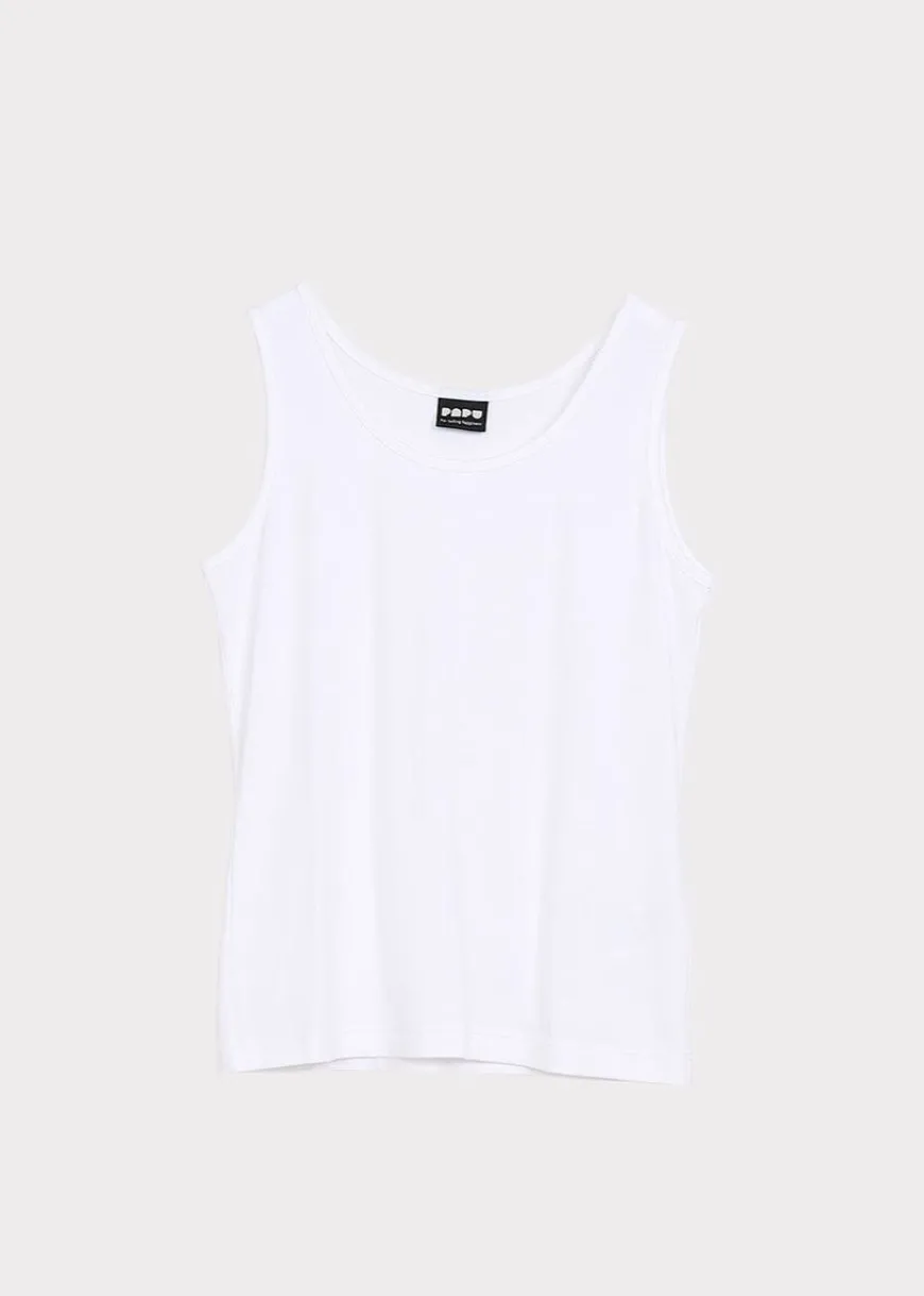 Papu -Merkin Toppi Valkoisena.Monikäyttöinen Hihaton Musta Toppi Pyöreällä Pääntiellä. Jokaisen Vaatekaapin Must-Have Tuote On Perustoppi, Joka On Helppo Käyttää Niin Aluspaitana Kuin Kesällä Sellaisenaan. Kauniisti Laskeutuva Ecovero On Erityisen Pehmeä Ja Mukava Materiaali Ihoa Vasten.