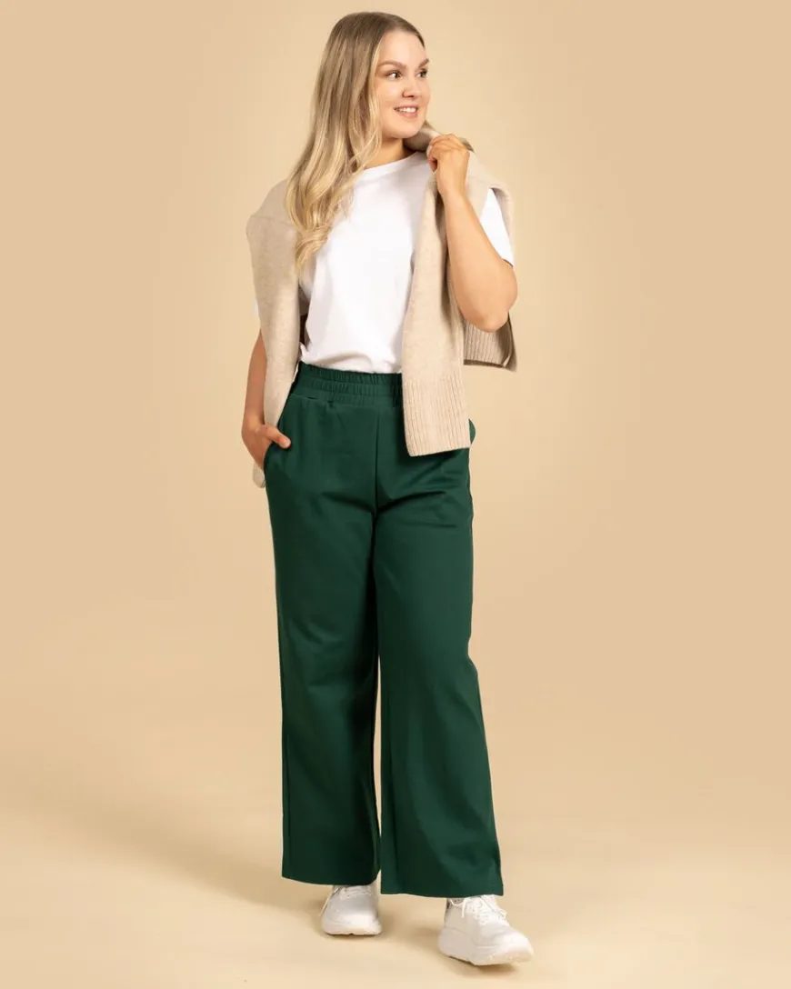 Riva Clothing -Merkin Leveät Housut Tummanvihreänä.Leveälahkeiset Ja Todella Mukavat Housut Arkeen Ja Vapaa-Aikaan! Nämä Housut Ovat Täydelliset Arjen Pelastajat, Sillä Ne Ovat Ihanat Jalassa, Ja Sopivat Niin Tyköistuvien Kuin Löysien Yläosien Kanssa Ympäri Vuoden.Housuissa On Miellyttävä Korkea Joustovyötärö, Joka Ylttää Vyötärölle Asti. Taskut Ovat Tilavat, Jolloin Isompikin Puhelin Mahtuu Mukaan. Helppohoitoiset, Mutta Näyttävät Housut. Värinä Upea Tummanvihreä.