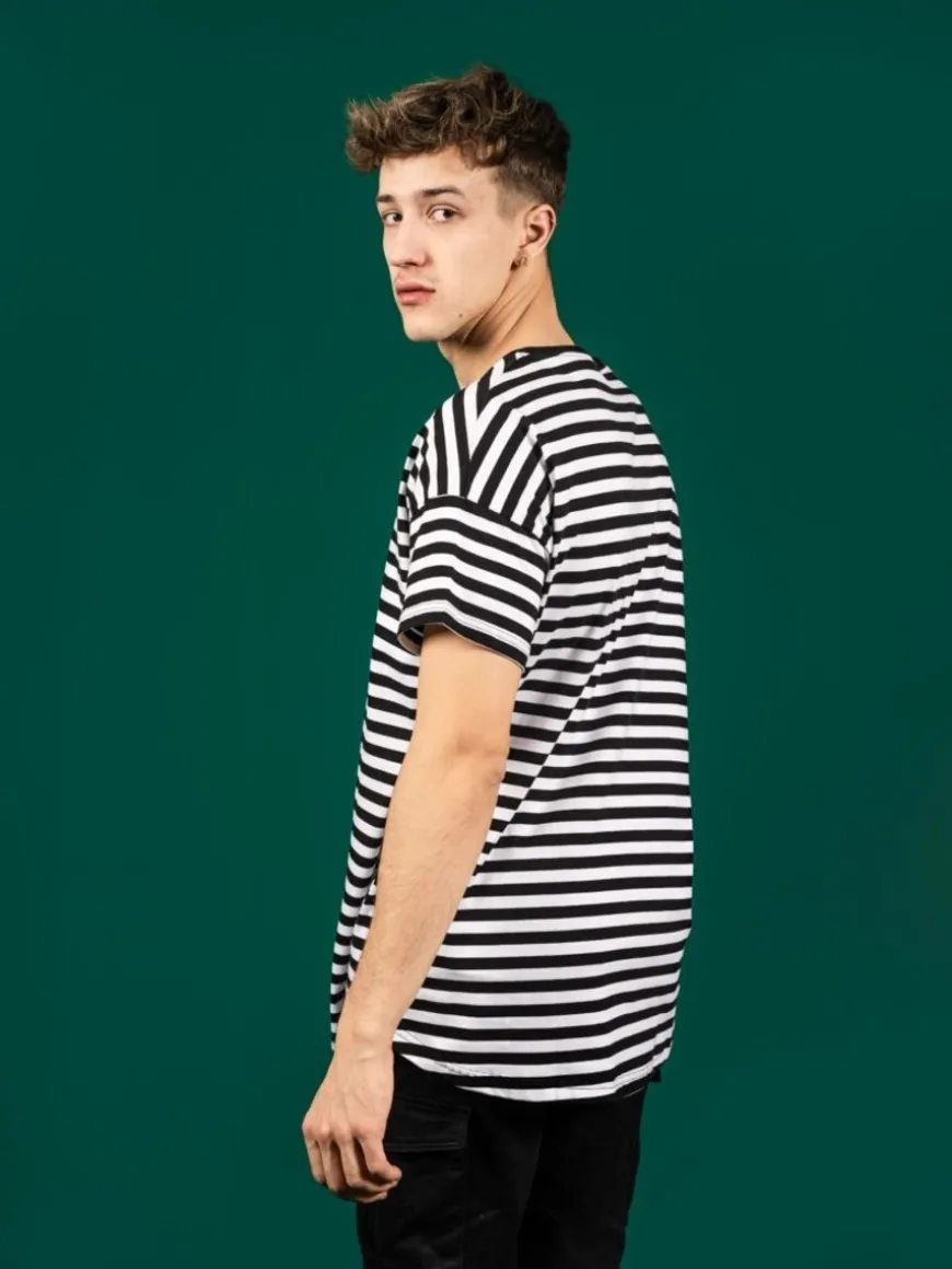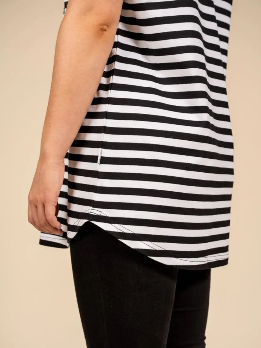 Riva Clothing -Merkin Pitkä Muisto T-Paita. Jokaisen Vaatekaapin Yksi Kulmakivistä – Laadukas T-Paita! Mustavalkoraidallinen Teeppari Ja Farkut Toimii Aina, Mutta Yhdistät Paidan Hyvin Moneen Eri Asuun Ja Tilanteeseen. Pidemmän Mallisessa T-Paidassa On Lasketut Olkapäät, Minkä Ansiosta Se Istuu Paremmin Kaikenkokoisille Hartioille. Myös Kainaloihin On Jätetty Aiempaa Enemmän Tilaa, Jotta Kainalot Eivät Kinnaisi Ja Hengittävyys Olisi Taattu. Pyöristetty Helma Laskeutuu Kauniisti Kapeillekin Lanteille, Mutta Antaa Myös Tilaa Leveämmälle Lantiolle. Samalla Näimme, Että Pidempää, Pyöristetyllä Helmalla Olevaa T-Paitaa Voi Käyttää Mekon Tilalla, Yhdistettynä Esimerkiksi Neuletakkiin Ja Legginseihin. Pidempi Selkäisille Ihmisille Tämä Malli Taas Laskeutuu Mukavasti Tarpeeksi Pitkälle, Eikä Takapuoli Pääse Vahingossa Vilkkumaan.
