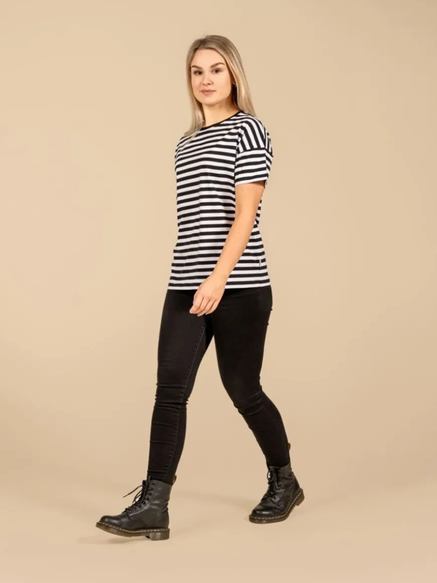 Riva Clothing -Merkin Raidallinen Muisto T-Paita.Jokaisen Vaatekaapin Yksi Kulmakivistä – Laadukas T-Paita! Mustavalkoraidallinen Teeppari Ja Farkut Toimii Aina, Mutta Yhdistät Paidan Hyvin Moneen Eri Asuun Ja Tilanteeseen. T-Paidassa On Lasketut Olkapäät, Minkä Ansiosta Se Istuu Paremmin Kaikenkokoisille Hartioille. Myös Kainaloihin On Jätetty Aiempaa Enemmän Tilaa, Jotta Kainalot Eivät Kinnaisi Ja Hengittävyys Olisi Taattu. Noki T-Paita On Normaalin Mittainen Malli.