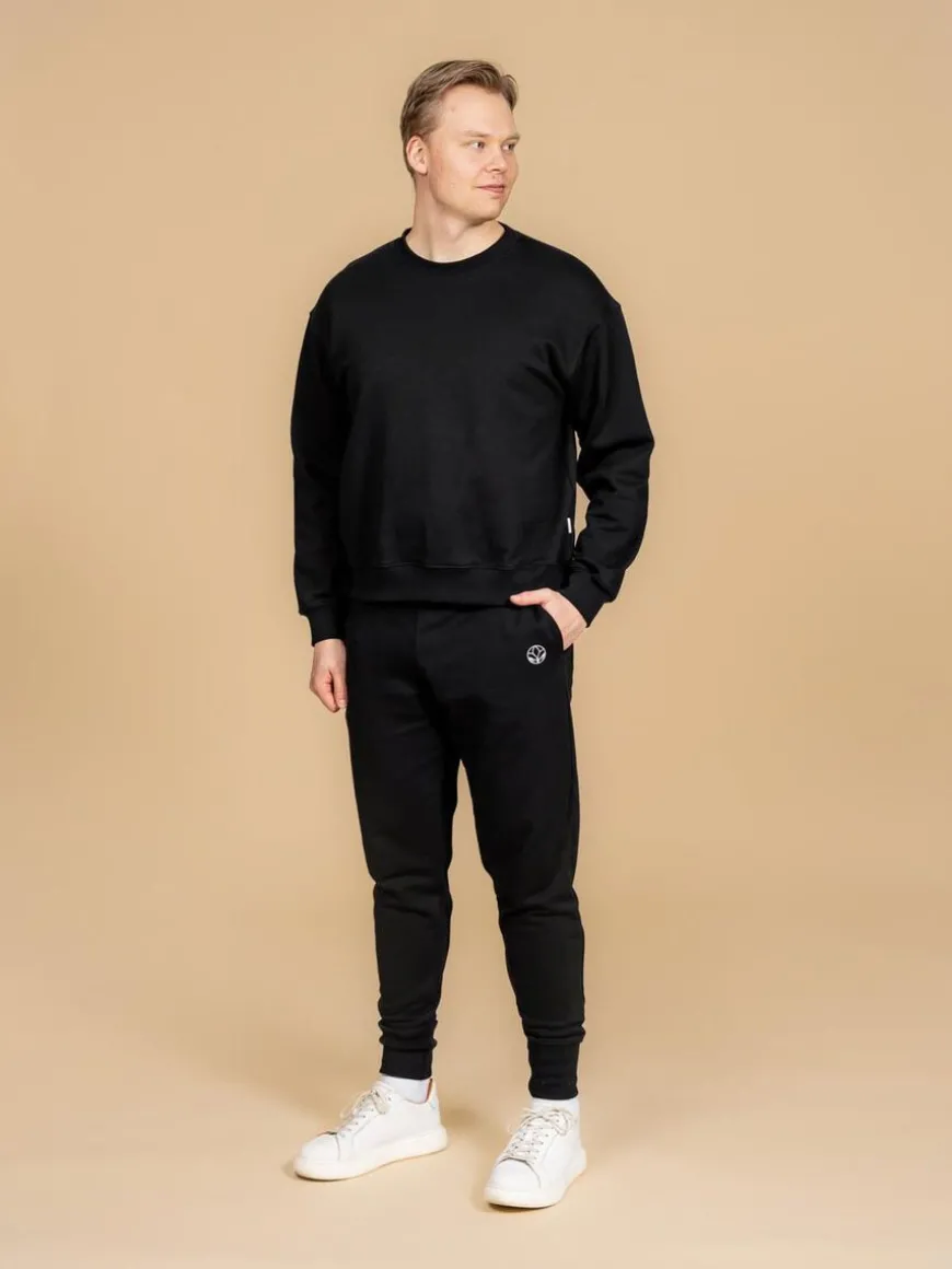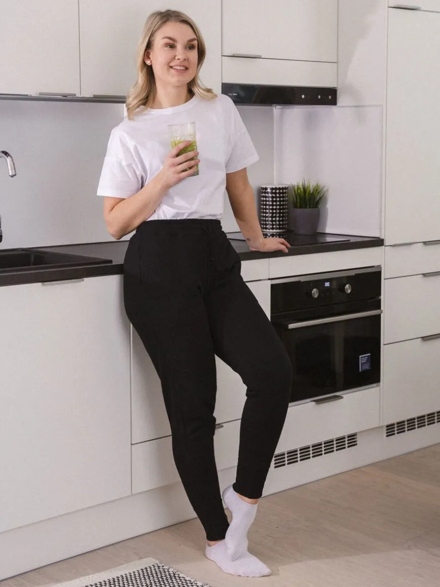 Riva Clothing Merkin Kapeat Noki Collegehousut.Kapeamman Malliset Mustat Collegehousut, Joissa Viihdyt Hyvin Niin Kotona, Vapaa-Ajalla Kuin Rentoina Toimistopäivinä! Soveltuu Kivasti Myös Ulkoiluun. Yhdistä Niin Yksiväristen Kuin Kuosillisten Yläosien Kanssa. Housut Kapenevat Nilkkoja Kohden Ja Antavat Sporttisen Silauksen Asuun Kuin Asuun.Housut Ovat Lantiolta Väljät Ja Niissä On Kiristysmahdollisuus Vyötärön Säätämiseksi. Housujen Lahkeissa On 10Cm Korkea Resori, Joka Mahdollistaa Paremmin Eri Mittaiset Käyttäjät. Pitkä Resori Kasaa Paremmin Housuja Ja Tarvittaessa Lyhimmät Käyttäjät Voivat Taittaa Sen. Korkeampi Resori Myös Näyttää Tyylikkäältä Ja Pysyy Paremmin Tiukkana. Housuista Löytyy Syvät Taskut, Joihin Mahtuu Isompikin Luuri. Housujen Materiaali On Pitkäkuituista Luomupuuvillaa, Joka On Sisältä Harjaamatonta.