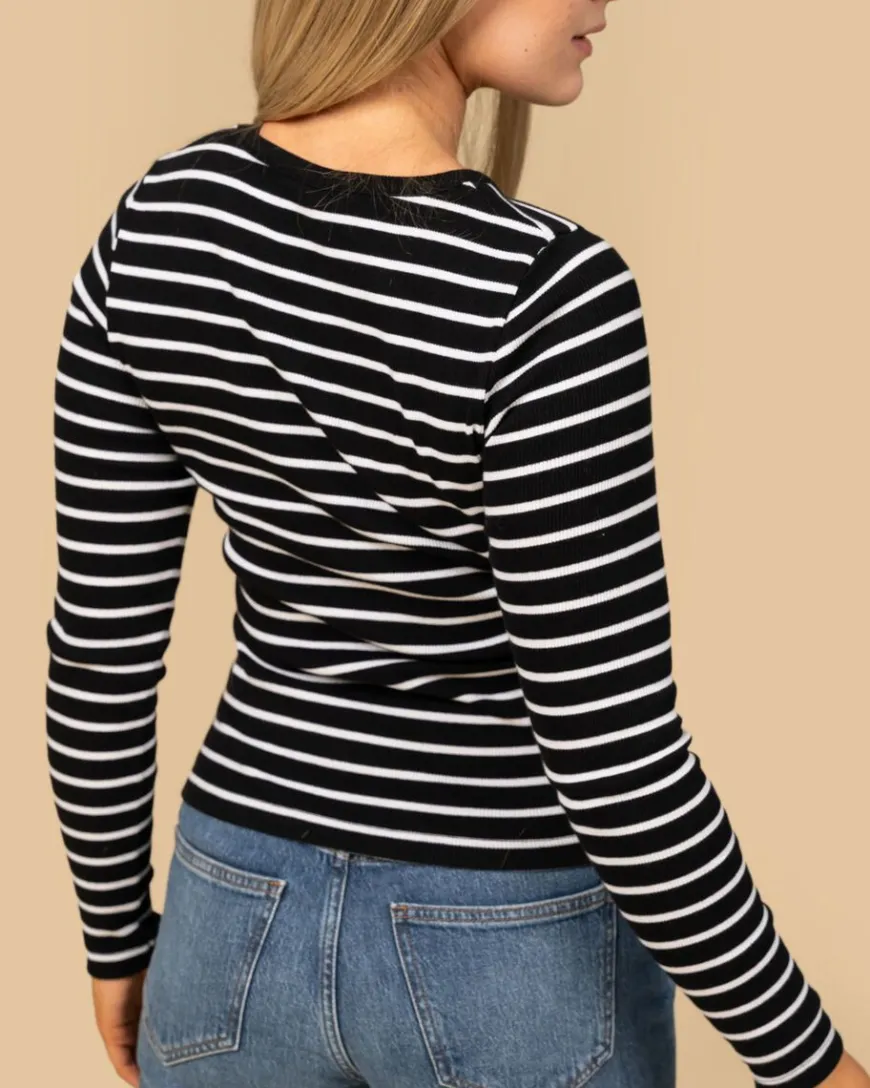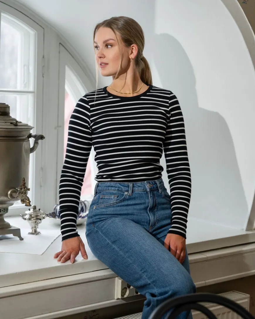 Riva Clothing -Merkin Raitapaita.Tämä Pitkähihainen Mustavalkoraidallinen Pitkähihainen Paita On Jokaisen Vaatekaapin Kulmakivi. Paidassa On Kaunis Vartalonmyötäinen Istuvuus. Mukavasta Ja Joustavasta Ribbimateriaalista Tehty Pitkähihainen Paita Sopii Moneen Asuun Ja Asuyhdistelmiin. Paidassa On Vartalonmyötäinen Istuvuus. Materiaali On Paksua Ja Kestävää Luomupuuvillaa, Joustavaa Ribbi-Neulosta.