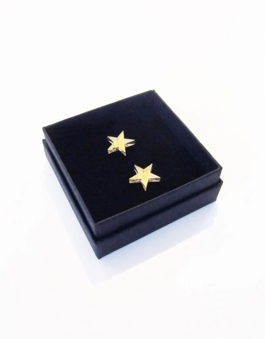 Saara Ruskola -Merkin Tähti -Korvakorut.Koko: N. 1,5 X 1,5 Cmmateriaali: 3 Mm Paksu Peiliakryylitapit: 925-Hopeakorut Toimitetaan Tyylikkäässä Mustassa Rasiassa.Suunniteltu Ja Valmistettu Helsingissä.