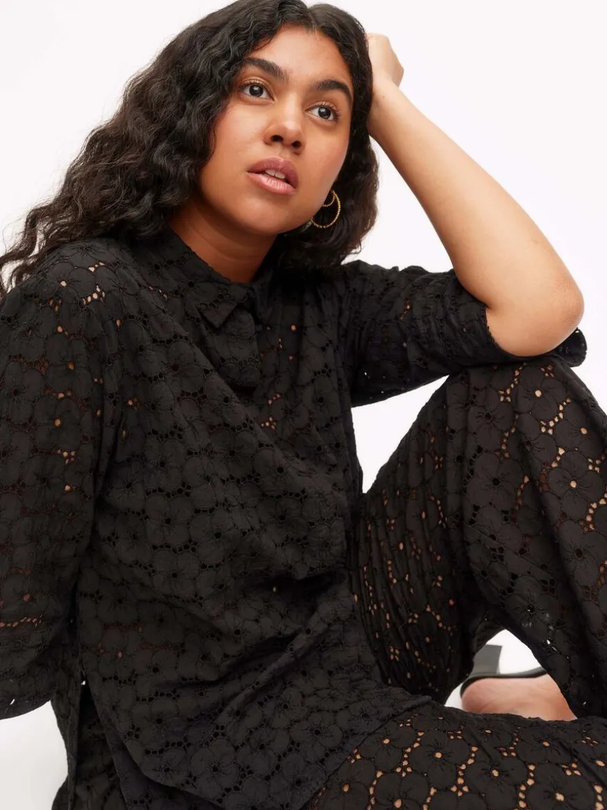 Uhana -Merkin Air Housut Mustana.Läpikuultavasta Puuvillapitsistä Valmistetut Suoralinjaiset Housut Arkeen, Vapaa-Ajalle Sekä Juhlaan! Yhtenäisen Lookin Luomiseksi, Yhdistä Housut Saman Materiaalin Fresh Air Paidan Kanssa.Housuissa On Suora Lahje, Sivutaskut Ja Kuminauhavyötärö. Ei Vuoria.