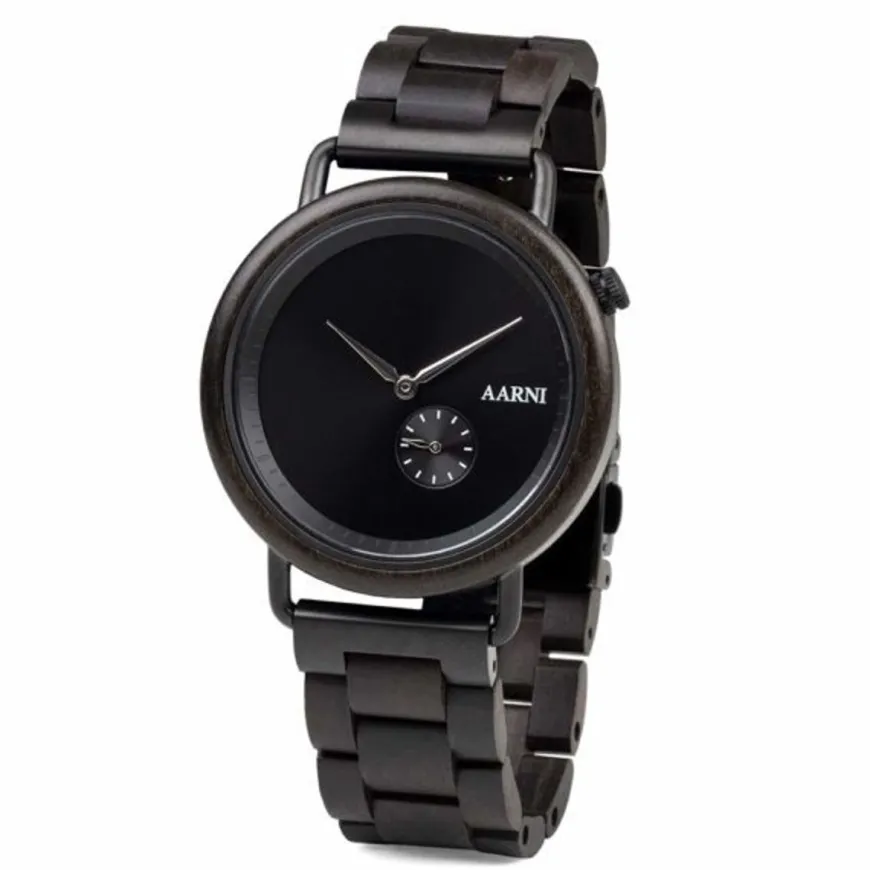 Aarni -Merkin Sirius Rannekello Eebenpuusta Valmistettuna.Mieleenpainuvaa Tyyliä. Siriuksen Upea Ja Selkeä Muotoilu Asettaa Riman Korkealle! Lähes Musta Ulkoasu Täydentyy Hopeisilla Viisareilla Ja Pienellä Sekuntinäytöllä. Tämä Kello On Tyylikäs Valinta Jokaiseen Päivään – Niin Toimistolle Kuin Edustustilaisuuksiin.Kello Toimitetaan Tyylikkäässä Lahjakotelossa.Kaikilla Aarnin Tuotteilla On Kolmen Vuoden Takuu.