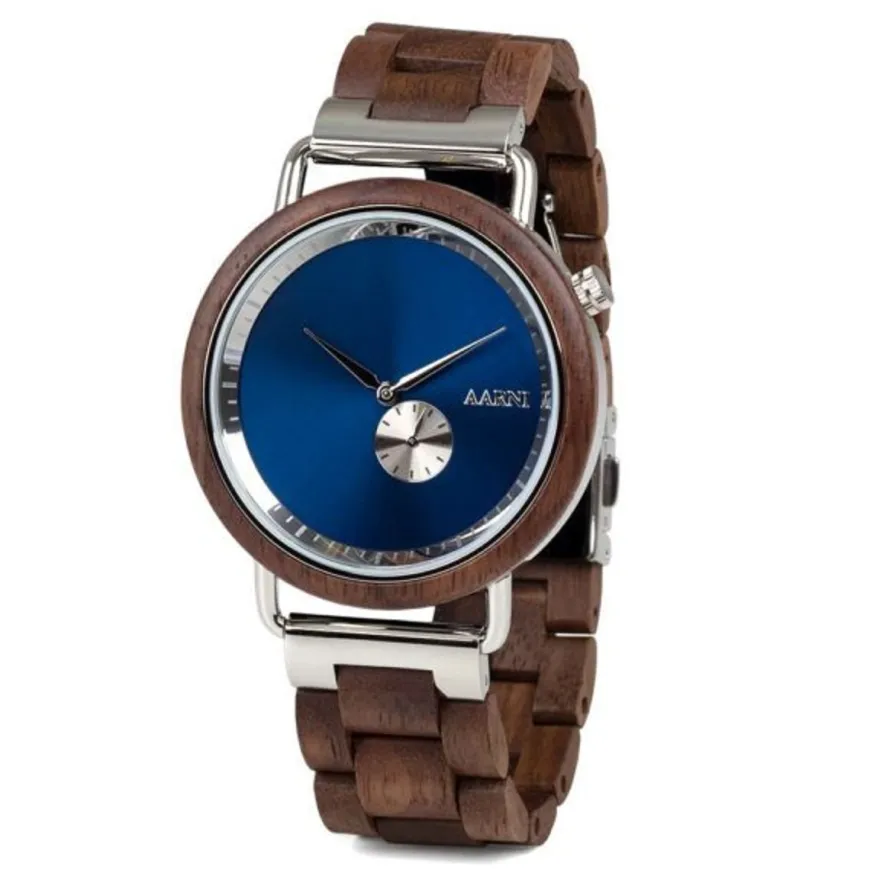 Aarni-Merkin Sirius Rannekello Pähkinäpuusta Valmistettuna.Mieleenpainuvaa Tyyliä. Siriuksen Upea Ja Selkeä Muotoilu Asettaa Riman Korkealle. Hopeiset Yksityiskohdat Sekä Pieni Sekuntinäyttö Vangitsevat Katseen. Tämä Tyylikäs Kello Sopii Erinomaisesti Jokaiseen Päivään – Niin Toimistolle Kuin Edustustilanteisiin.Kello Toimitetaan Tyylikkäässä Lahjakotelossa.Kaikilla Aarnin Tuotteilla On Kolmen Vuoden Takuu.