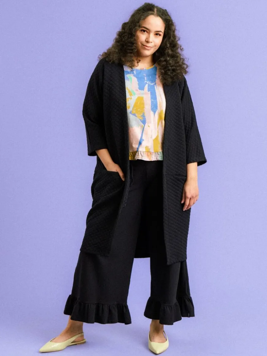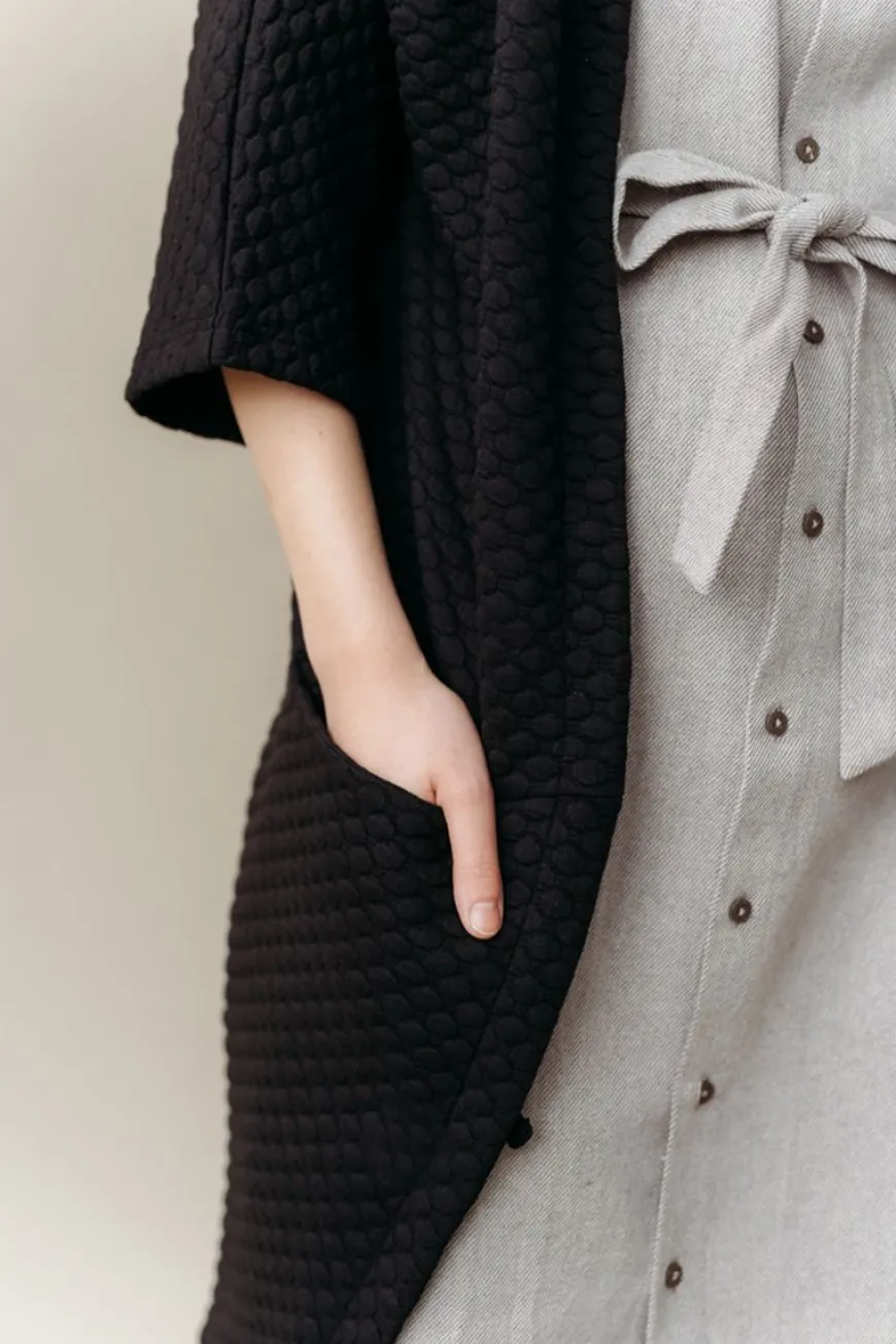 Aarre -Merkin Bubble Collegetakki Klassisena Mustana.Aarteen Rakastettu Suosikki Mustana! 3Malliltaan Pitkä Ja Väljä Takki 3/4-Hihoilla, Jonka Jujuna On Kaunis Kuplamuovimainen Kohoneulos “Bubble”. Bubble On Muuntautumiskykyinen Vaate, Joka Sopii Niin Mekkojen Kuin Housujenkin Kanssa. Tätä Takkia Käytät Vuoden Ympäri – Kesällä Sopii Ulkotakkina Viileisiin Iltoihin Ja Talvisin Lämmittää Sisätiloissa Välitakkina!Etukappaleella On Suuret Ja Kätevät Taskut Sekä Nauhat Solmimista Varten.Rento Ja Väljä Istuvuusbubble -Kohoneulos Tekee Yksivärisen Takin Pinnasta Eläväisentaskut Etukappaleellanauhat Solmimista Varten
