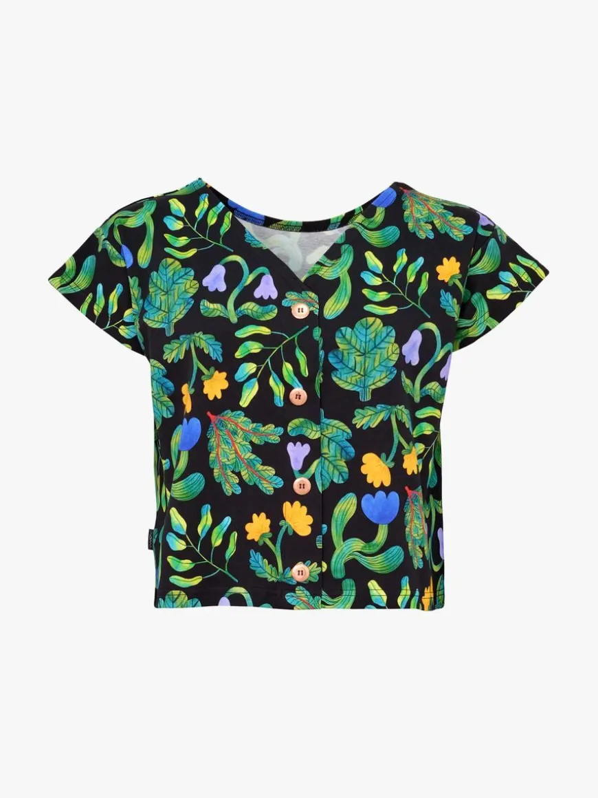 Aarre X Mia Minerva Malliston Celene T-Paita Kasvaa Kuosilla.Uniikin Mia Minerva X Aarre Kuvittajayhteistyömalliston Lyhythihainen Celene -Toppi On Helposti Yhdisteltävä Ja Monikäyttöinen Tuote. Lyhyt Laatikkomainen Malli Sopii Hyvin Niin Farkkujen Kuin Hameidenkin Kanssa. Helppohoitoinen Ja Mukava Celene-Toppi Sopii Hyvin Mukaan Myös Reissuun!Mia Minervan Suunnittelema Kasvaa -Kuosi On Värikäs, Lempeä Ja Juhlistaa Kasvua Leikkisällä Asenteella. Voit Pukea Topin Kahdella Tapaa – Napit Eteen Tai Taakse. Nappilista Ei Ole Toimiva. Toisella Puolella Ruusukullan Väriset Napit Sekä V-Pääntie, Toisin Päin Pukemalla Saat Toppiin Pienemmän Kaarevan Pääntien. Topin Materiaali On Ryhdikästä, Hieman Trikoota Vahvempaa Interlockia.